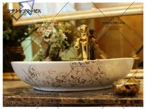アンティーク 洗面ボウル 国内ではまず見かけることのない大変ゴージャスな洗面ボウルです 素材はセラミックで繊細な図柄が施されております。 お洒落なバーやレストラン、ヘアサロンなど勿論ご自宅にも 如何でしょうか? サイズ:横幅57 奥行き36 高さ12 重さ:13kg 排水口直径:50mm ※洗面ボウルはテーブル等に固定して頂く必要があります。 出品は洗面ボウルのみとなり、立水栓は付属しておりません
