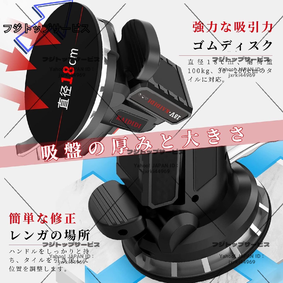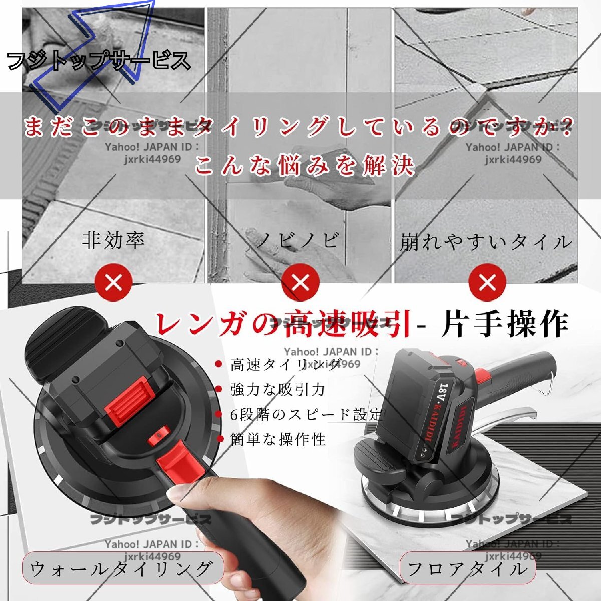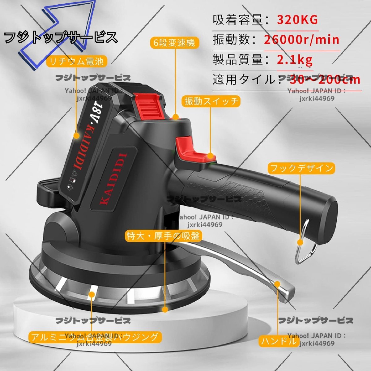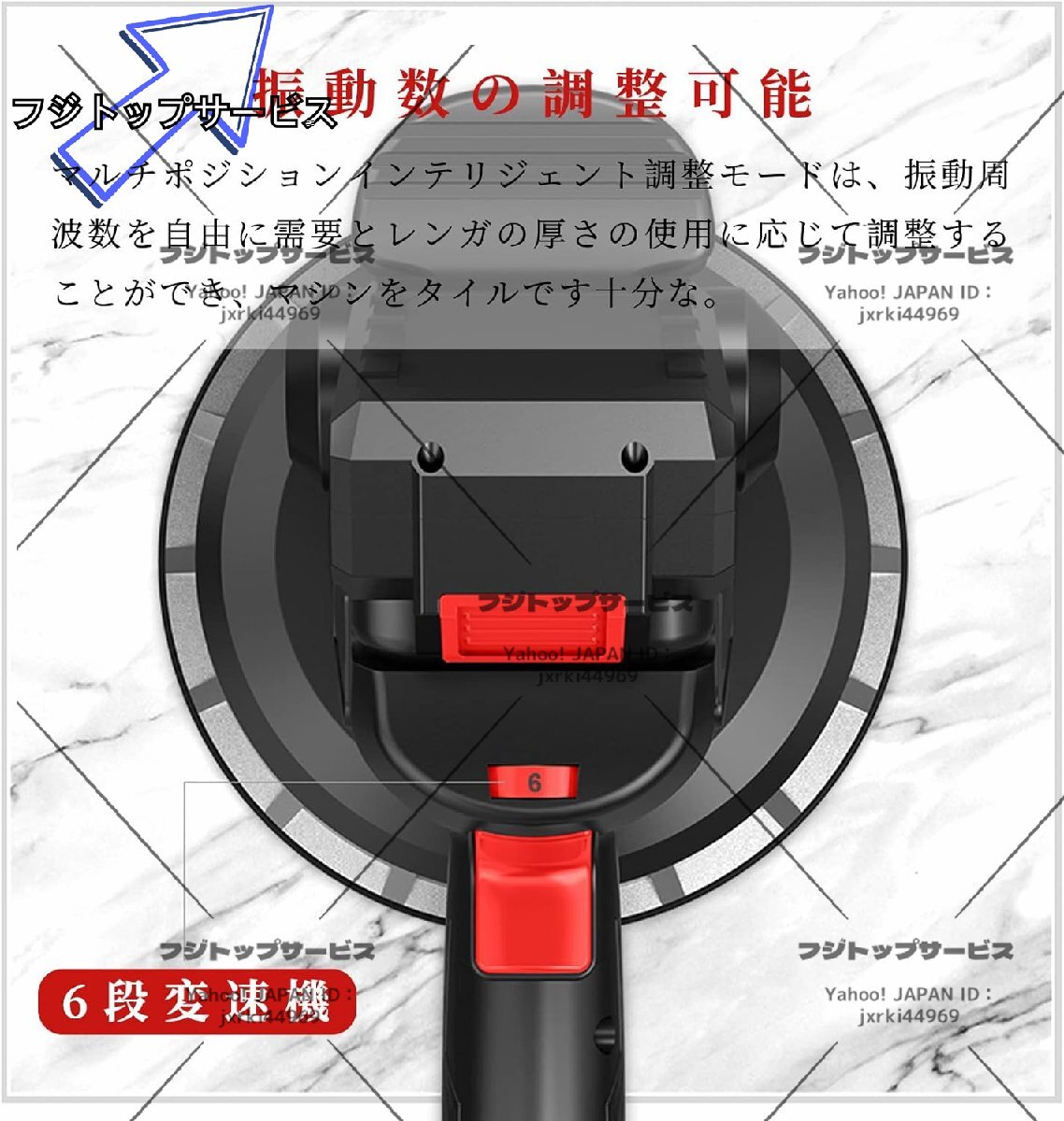 ●状態: 新品未使用 ★セルフロッキングハンドル:デザインを一新し、ハンドルを全開にすると自動的にロックし、吸引力を維持し、長時間の作業が容易になります。 ★6速振動強度調整:レンガ本体の大きさや石膏の厚さに応じて振動数を調整できます。 ★効率的なタイリングマシン:320kg/高周波の振動を吸収できます。すぐにタイル張り。幅広い用途で、200x200cm未満のタイルに適しており、高周波振動のある効率的な舗装:26000/分。 ★パワフルなサクションラバープレート:サクションカップの幅を18cm大きくして320kgの重量を吸収します。 ★ポータブルタイル:タイルマシンのゴム製吸盤は、タイルを効果的に吸収できます。床タイルや壁タイルの移動や設置に使用し、作業効率を大幅に向上させます。