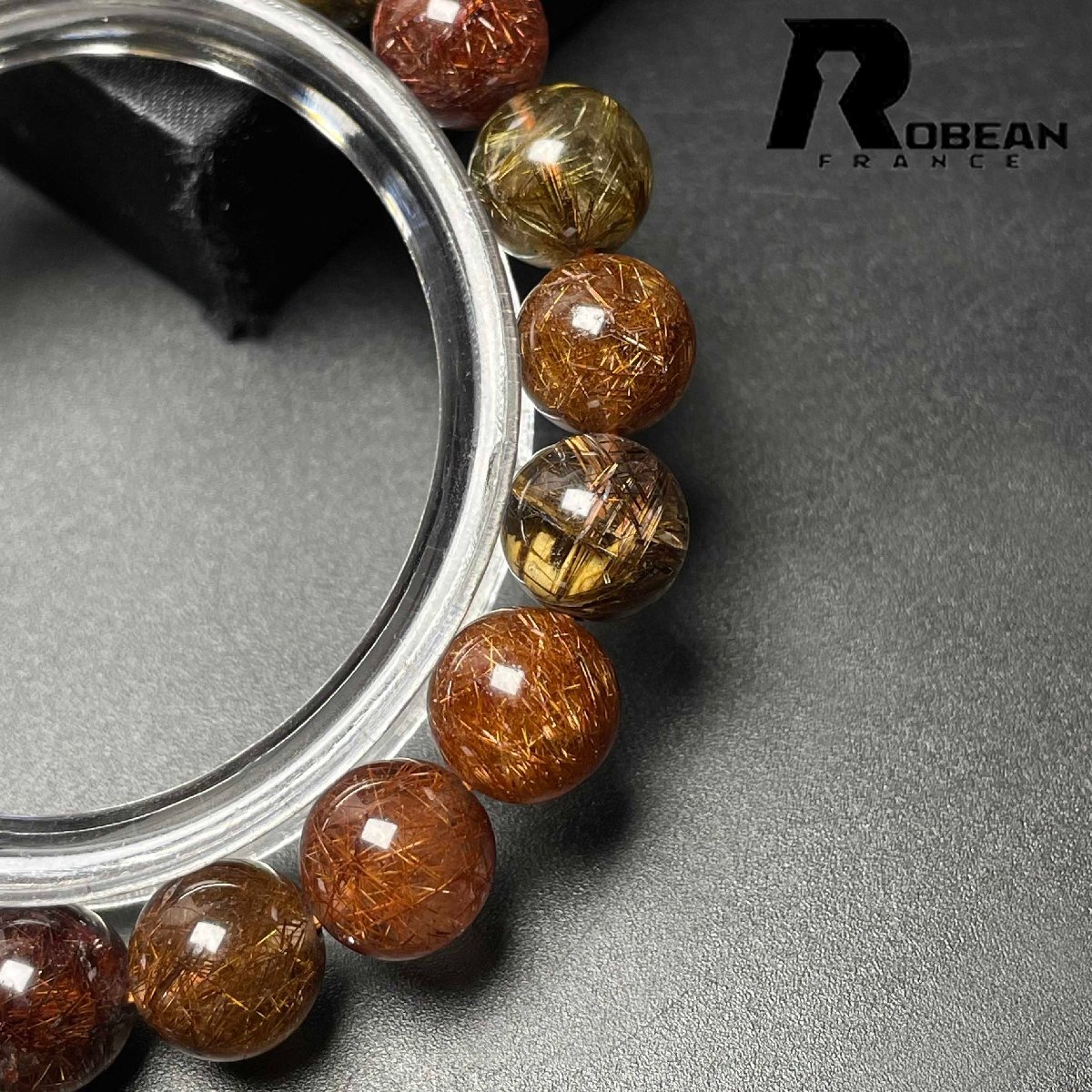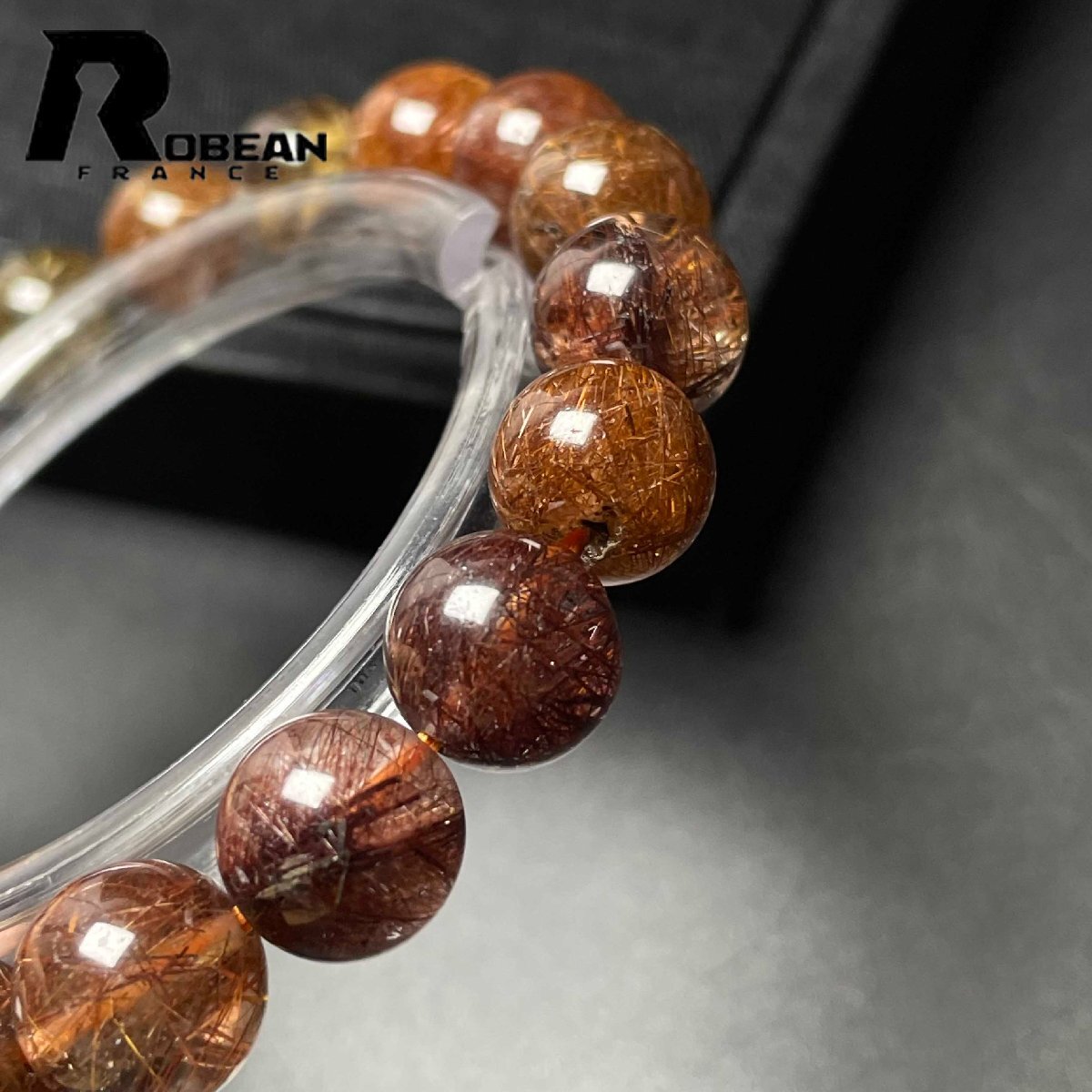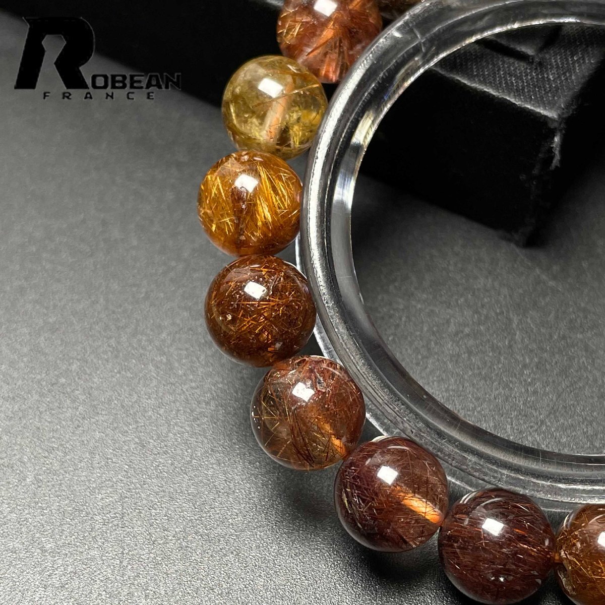 高級 EU製 定価10万円★ROBEAN・銅髪ルチルクォーツ★ブレスレット パワーストーン 天然石 綺麗 金運 お守り 9.8-10.2mm M1028876