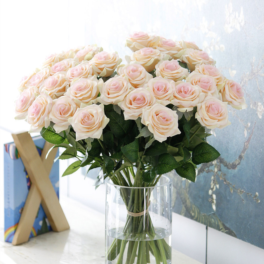 人気お色選択可大量25本バラ高級造花 アートフラワーシルクフラワー花束薔薇 ローズアレンジメント ブーケ プレゼント お祝い 結婚式ピンク