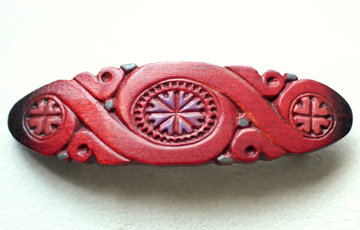 アイヌ 木彫り 手彫り 魔除けの文様 バレッタ 髪留め