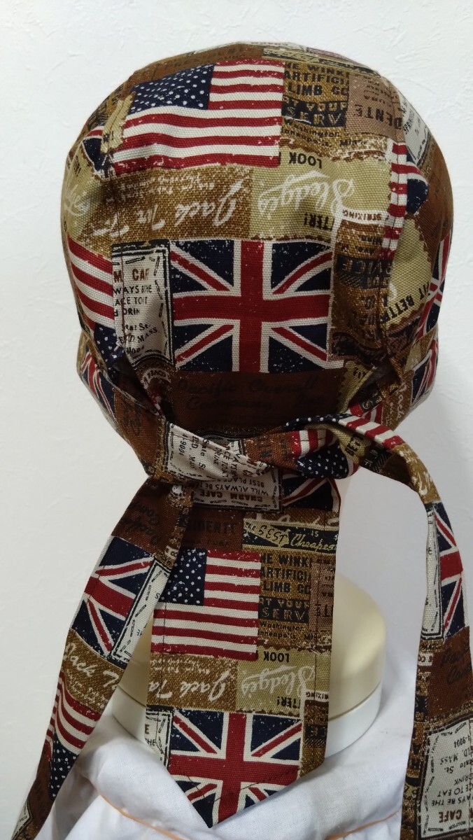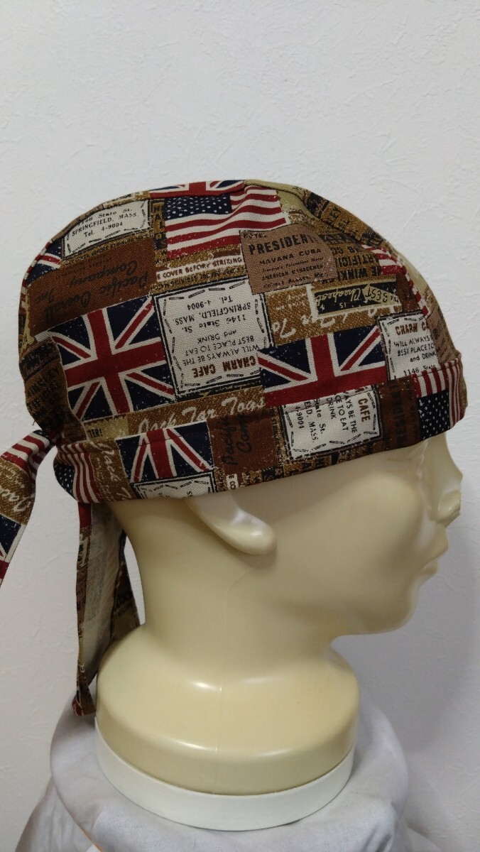 ★バンダナキャップ★ハンドメイド デニム柄 国旗 ブラウン 茶