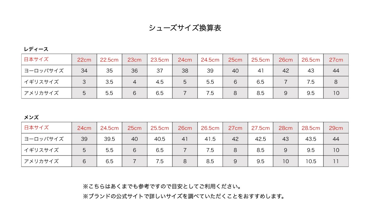 | サイズ | 表記サイズ:US6 24cm アウトソール:26cm 幅:9.5cm |