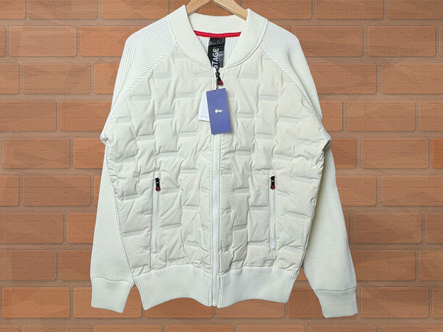 シームレスの凹凸ある表情がインパクトあるダウンとニットのコンビデザインMA1型ブルゾンです。