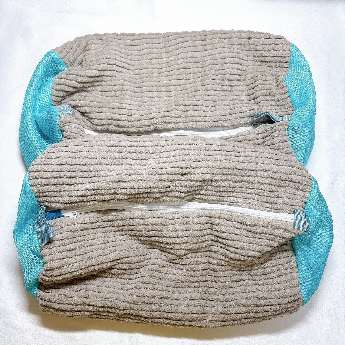 外側はメッシュ構造で通気性がよく、型崩れを防ぎながら洗えます