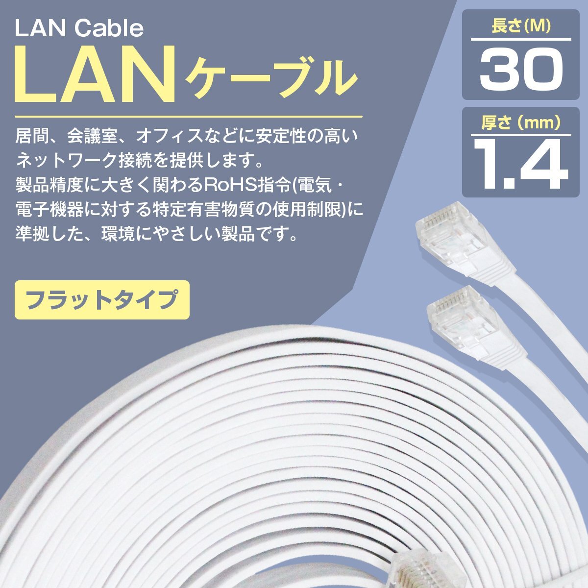 CAT6 カテゴリ6 薄型スーパーフラット LANケーブル 30m 3000cm ホワイト パソコン インターネット PC Wi-Fi WiFi ルーター 無線 有線 配線