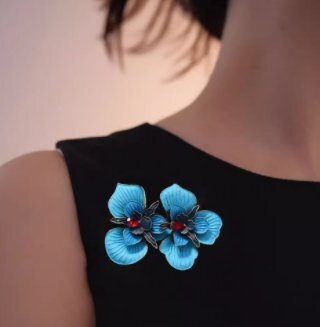 青新胡蝶蘭花ブローチ花アヤメ花アクセサリーピン留めプレゼント
