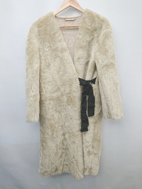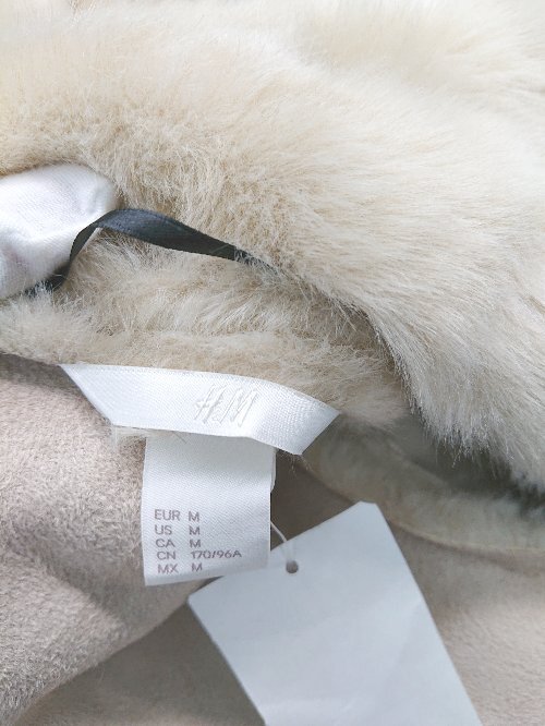 ■ H&M エイチアンドエム フェイクファー ボタンレス 長袖 ノーカラー コート サイズEUR M US M ベージュ レディース P