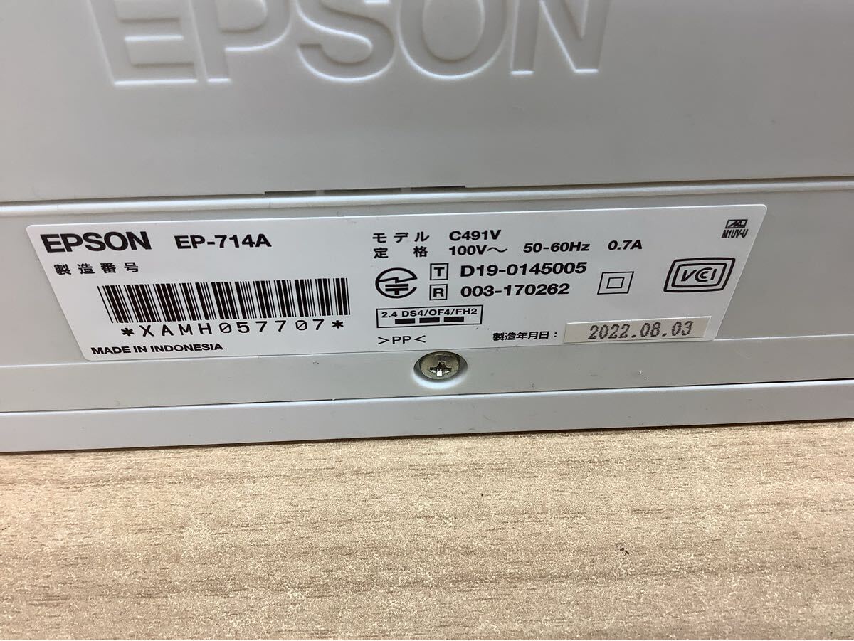 EPSON エプソン EP-714A インクジェットプリンター 通電のみ確認済み 2022年製 予備インク付き 現状品