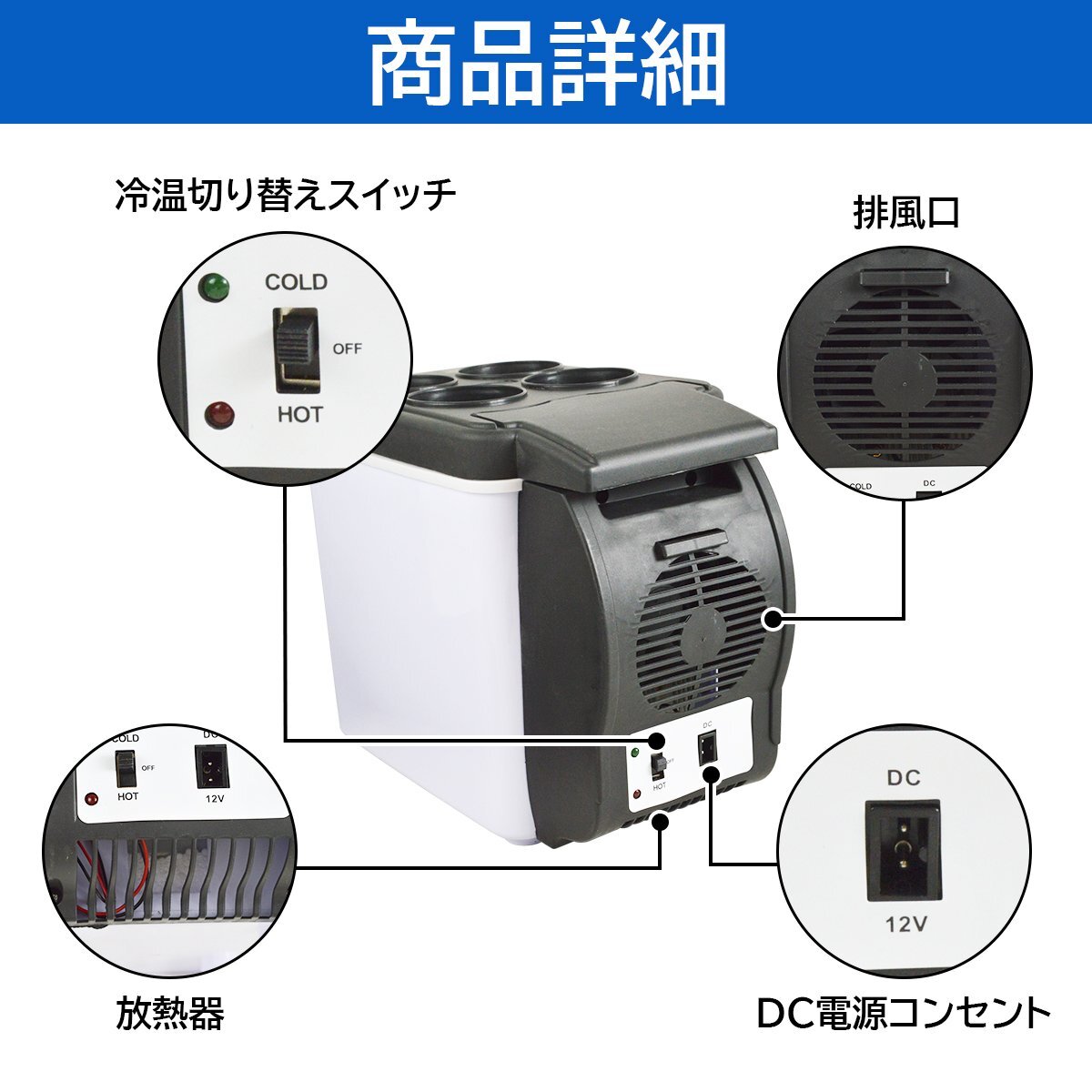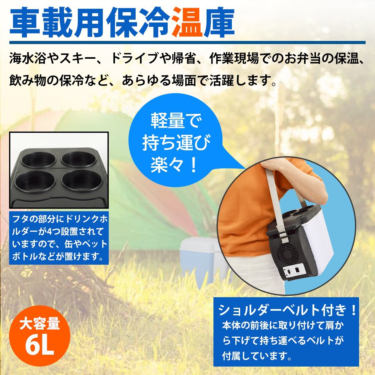6L 12V 冷蔵庫 車用 トラック 小型 保冷庫 キャンプ 旅行 車載 クーラーボックス アウトドア 冷温庫 保温 保冷 COOL HOT