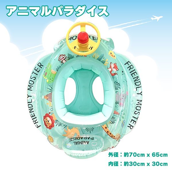 ☆ハンドル付きキッズボート アニマルパラダイス 【商品名】 ハンドル付きキッズボート アニマルパラダイス 【タイプ】 アニマルパラダイス 【素材】 ポリ塩化ビニル 【サイズ】 アニマルパラダイス: 約約70x65cm 内径25cm×30cm ※メーカー表記サイズですが多少の誤差が生じる場合がございます。予めご了承ください。 ※空気を入れると多少寸法は小さくなります。 【対象年齢】 2歳以上 【おすすめポイント♪】 乳幼児のお子様が水に落ちてしまわないよう、座れる浮輪タイプの浮具です。 ハンドルもついていて安定感があります。 穴から足を出して、安定させることができるのでお子様も安心して海やプールを楽しむことができます 音が出るクラクションで楽しめるハンドル付き。 |