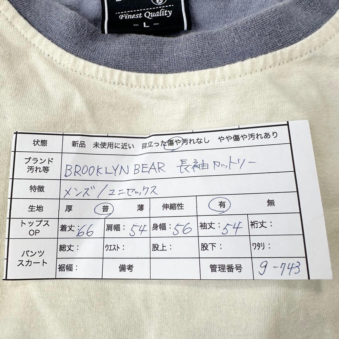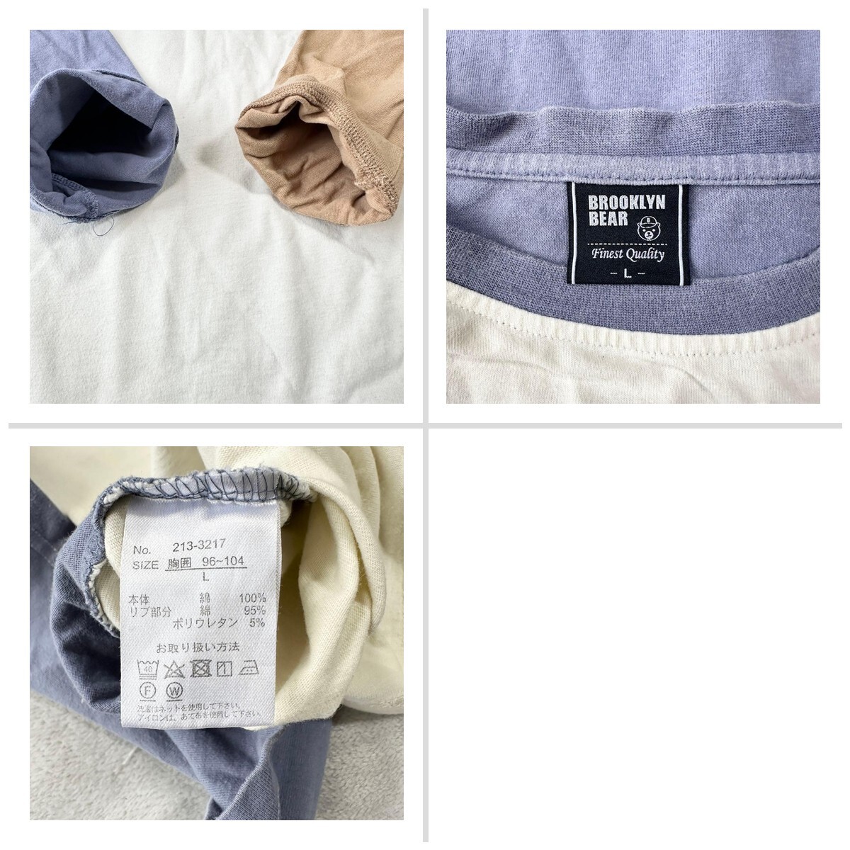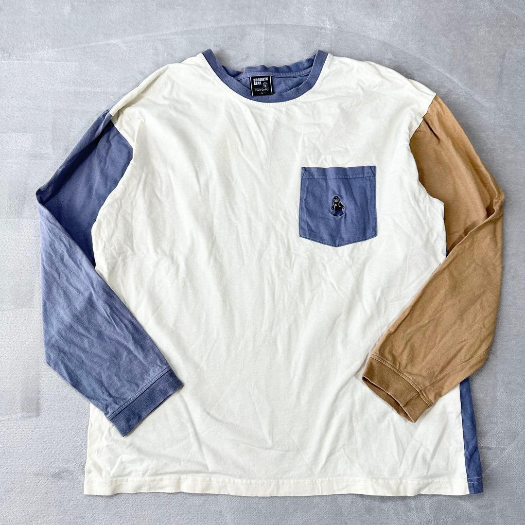 ブルックリンベア バイカラー長袖Tシャツ カットソー ロンT くま刺繍 L 5B6DB8