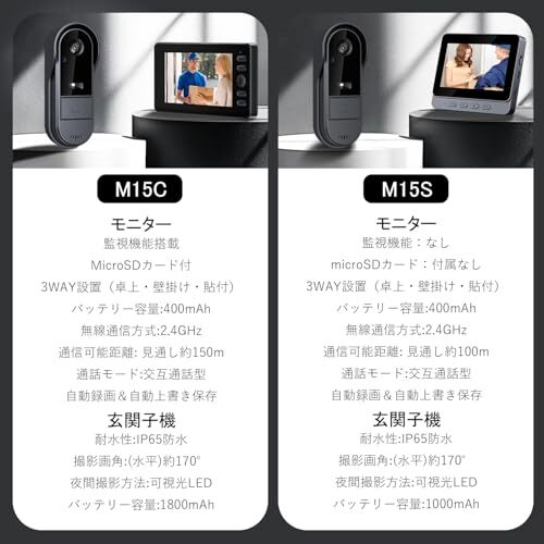 【USB充電式&最大180日連続使用】170°超広角レンズと4.3インチのワイド画面モニターで来訪者を広範囲で確認。玄関カメラは1800mAhの大容量バッテリーを搭載し、約3時間のフル充電で最大180日間の使用が可能。モニターは電源コード式でコンセントから簡単に給電でき、省電力設計により未使用時は自動で画面をオフに。400mAhの内蔵バッテリー付きで、停電時でも安心して使用できるワイヤレスドアホン。