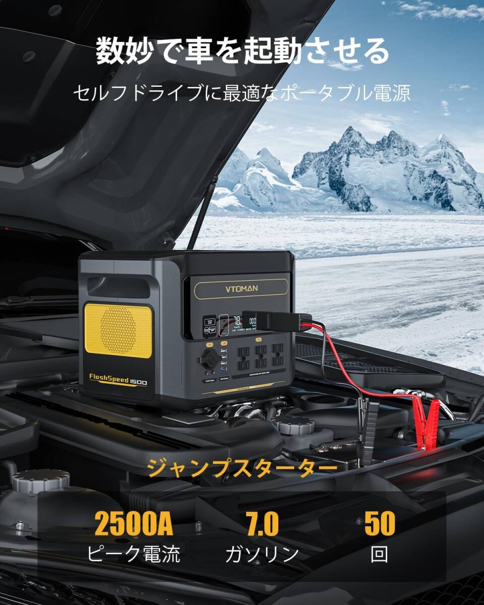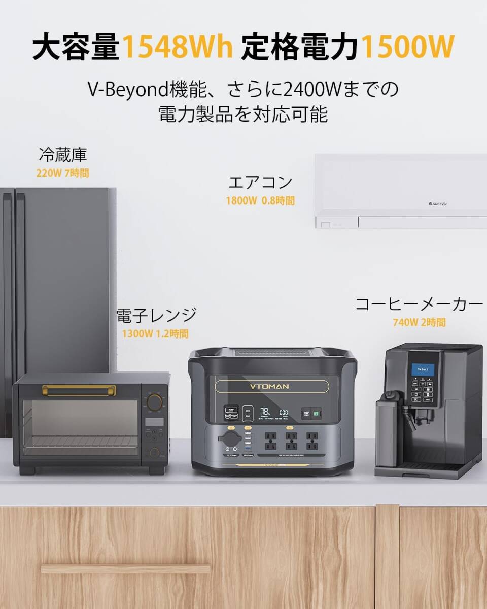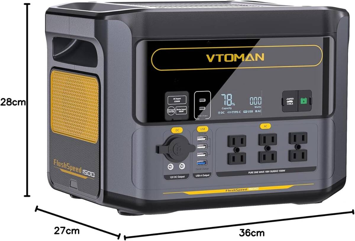 商品説明(日本向け・返品不可) 【ご注意ください】本製品は「オーストラリア規格(AUSプラグ)」モデルです。 日本国内で使用する場合は、必ず別途「AUS→日本(Aタイプ)変換プラグ」をお使いください。 VTOMAN FlashSpeed 1500 ポータブル電源 状態:未使用・新品同様 動作確認は変換プラグ使用で問題なく可能です 日本国内メーカー保証は対象外となります 返品不可(ノークレーム・ノーリターン)でお願いいたします。 規格をご理解いただいた上で、ご購入をお願いいたします。 1500Wの急速充電が可能なVTOMAN FlashSpeed 1500、長寿命のリン酸鉄リチウムイオンバッテリーを搭載。 - ブランド: VTOMAN - モデル名: FlashSpeed 1500 - 充電時間(ACコンセント): 1時間 - 充電時間(シガーソケット): 13-15時間 - バッテリー寿命: 約3000回 - バッテリータイプ: リン酸鉄リチウムイオン ご覧いただきありがとうございます。 新品未使用品です。