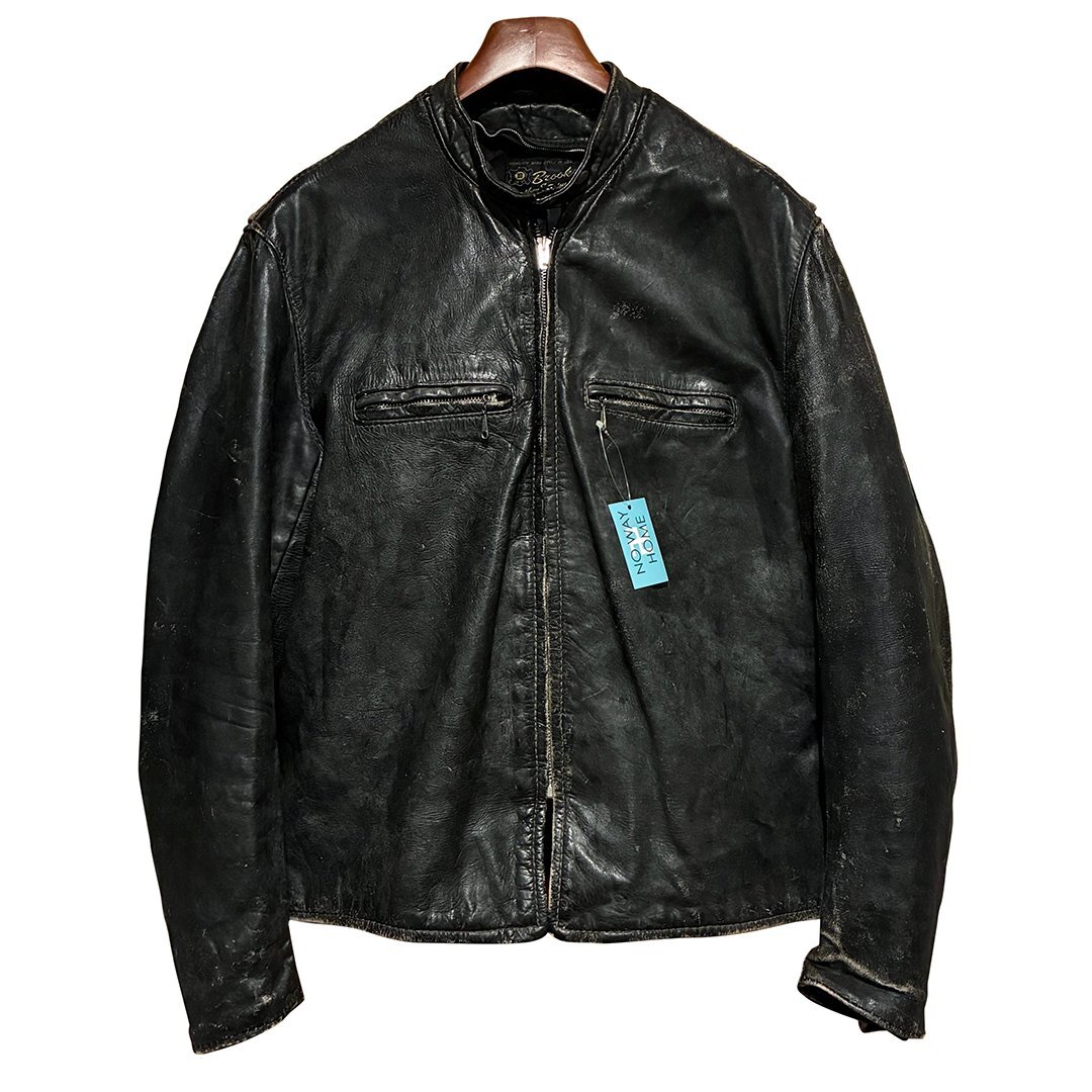 60’s~ ビンテージ ブルックス Brooks 黒 シングルライダースジャケット レザージャケット 革ジャン 本革 XL程度 EJ2008-60-EK10 検 USA製
