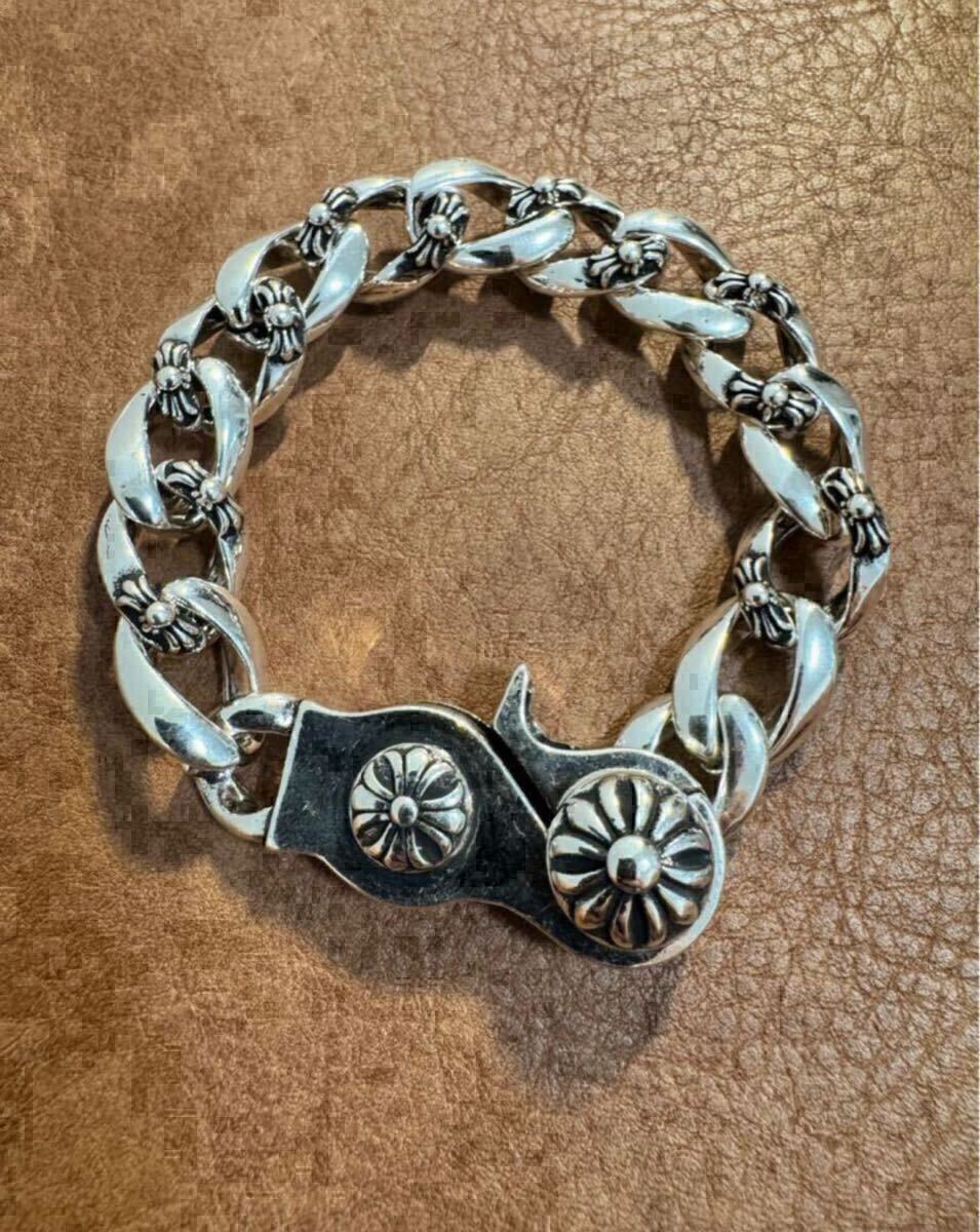 ブレスレット リストバンド シルバー チェーン 人気 フローラルクロス ビンテージシルバーコーティング ブレスレット