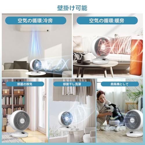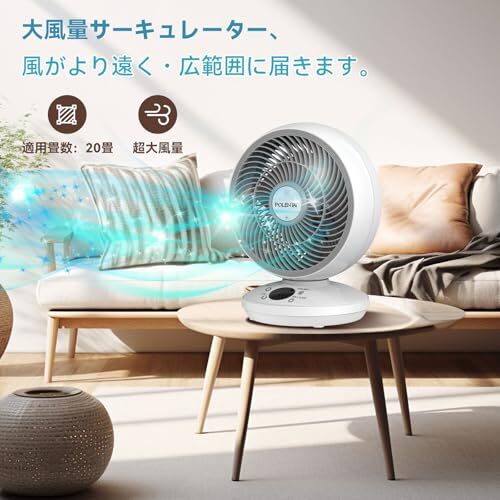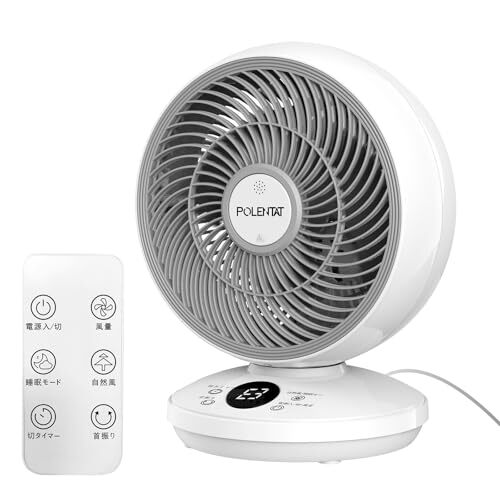 POLENTAT サーキュレーター 扇風機 静音 20畳 左右首振り お手入れ簡単 リモコン付き 壁掛け パワフル送風 3段階風R