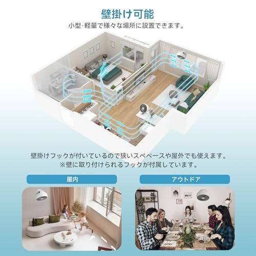【コンパクトでスタイリッシュなデザイン】どんな部屋にもマッチするコンパクトでスタイリッシュなデザイン。重さはわずか1.45kgで、持ち運びも簡単です。本体底面に壁掛け用フック穴が設置されており、壁に掛けての使用が可能です。壁掛けタイプは場所を取らず、邪魔にならない設計で、床面積を圧迫しないため、狭い部屋でもスペースを取らずに設置できます。壁掛け部品が含まれているので、すぐに壁に取り付けてご利用いただけます。壁掛けの場合フツクを使用します。そのフツクは壁にシールを貼るものです。フックが取り付けられる壁での使用にのみ適しています。石膏ボードは使えません。省スペース設計により、ベッドサイド、デスク、リビングルームなど、どこにでも置きやすいです。おしゃれなデザインでインテリアとしても映え、モダンな家庭にぴったりです。