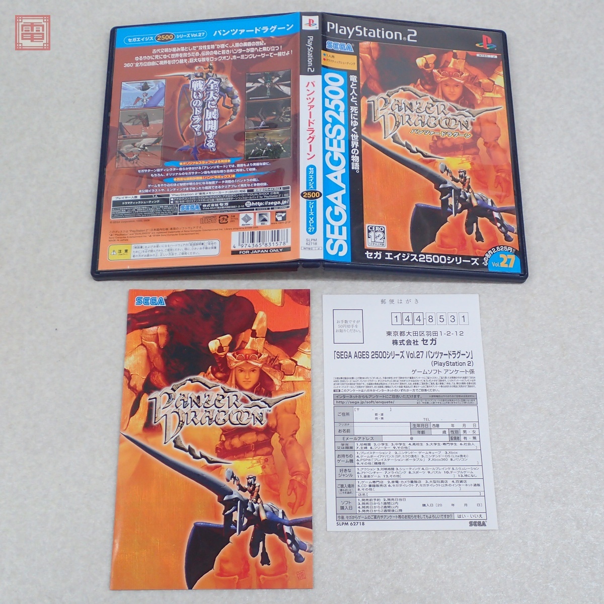 動作保証品 PS2 プレステ2 パンツァードラグーン セガエイジス2500シリーズ SEGA 箱説ハガキ付 こちらの商品は動作保証品となりますので、一週間の動作保証をお付けします。 ■ケースにスレ、角スレ、汚れ、ヤケ、キズがあります。 ■取扱説明書にスレ、角スレ、汚れ、ヤケ、キズがあります。 ■盤面に目立ったキズはありません。 ■上記以外は未チェックです。 ■写真のものが全てです。付属物の有無や状態については写真からご判断ください。 ■付属物については細かいチェックはしておりませんので、万が一、欠品があったり余計な物が入っていたとしてもご了承ください。 ■商品到着後、当店の保証期間中は、商品及び箱や取説、付属品などを1つでも廃棄や破損をしないようにお願い致します。廃棄や破損をした場合、商品に問題があった場合でも対応や返金などの対処ができなくなります。 ■商品によりますが、発売されてから10年以上経過している中古品である事をご理解頂いた上でご入札をお願い致します。なお、新品や美品、また特記事項がある場合は別途明記します。 | |||