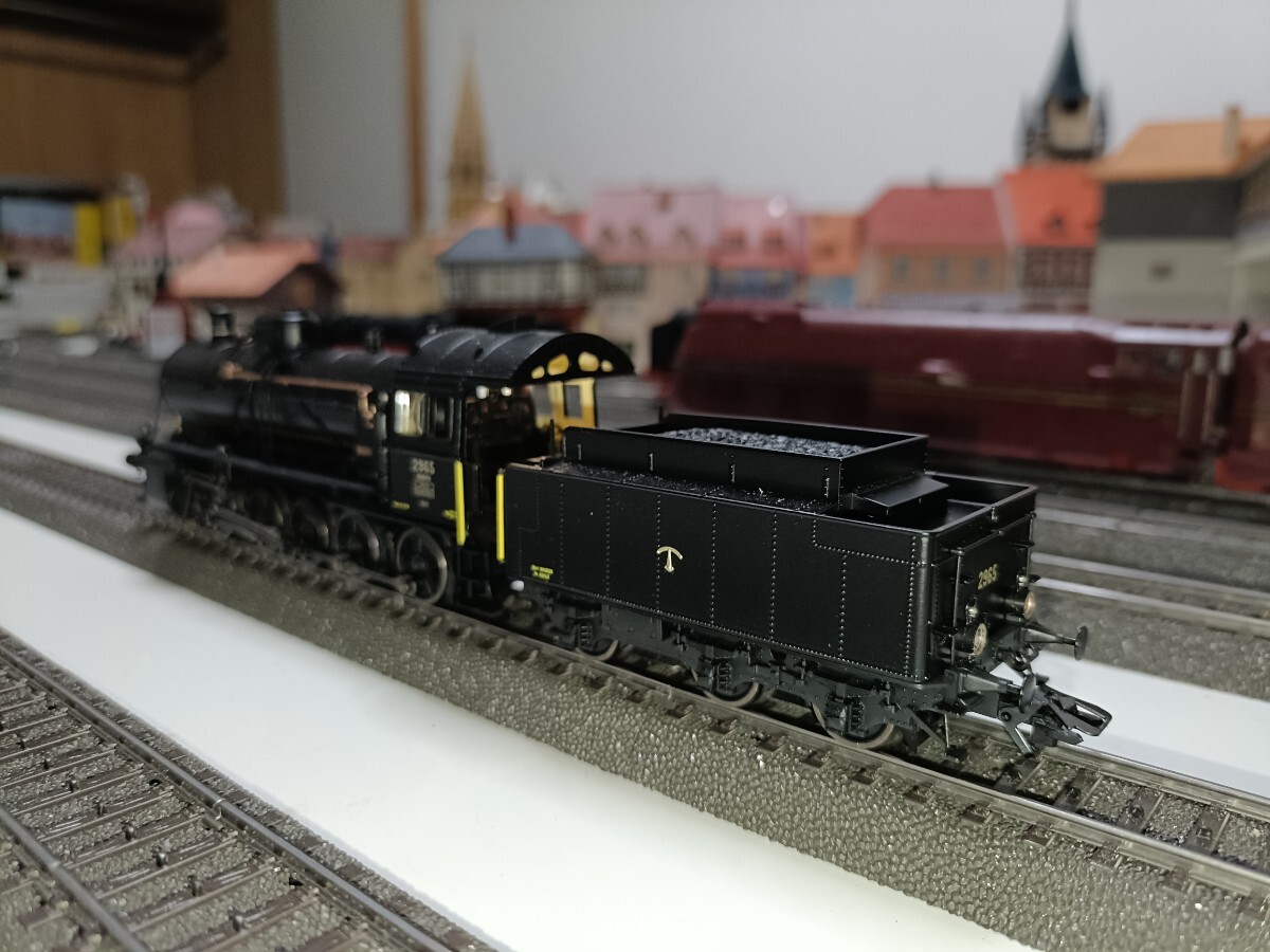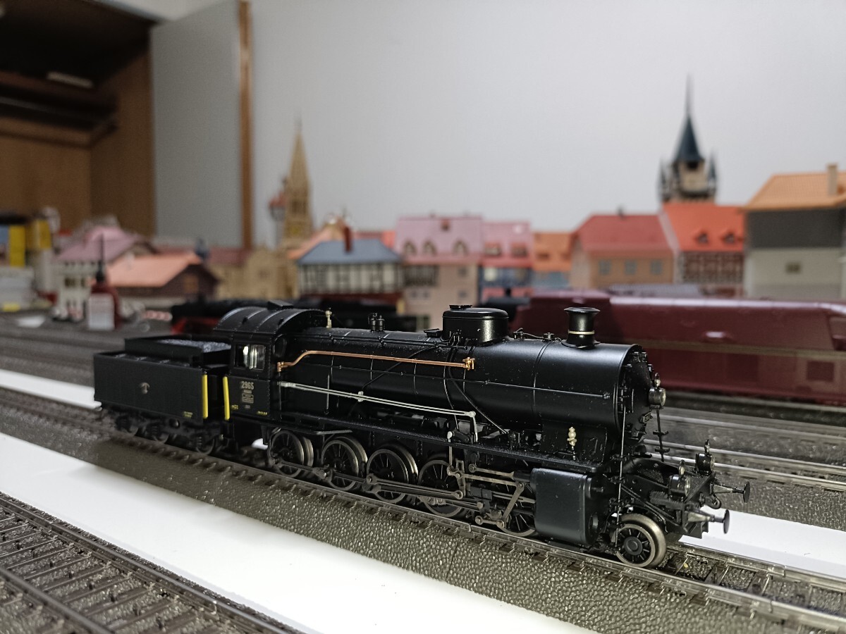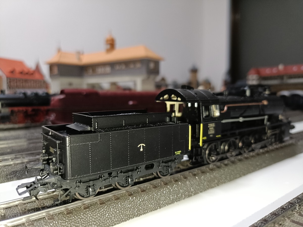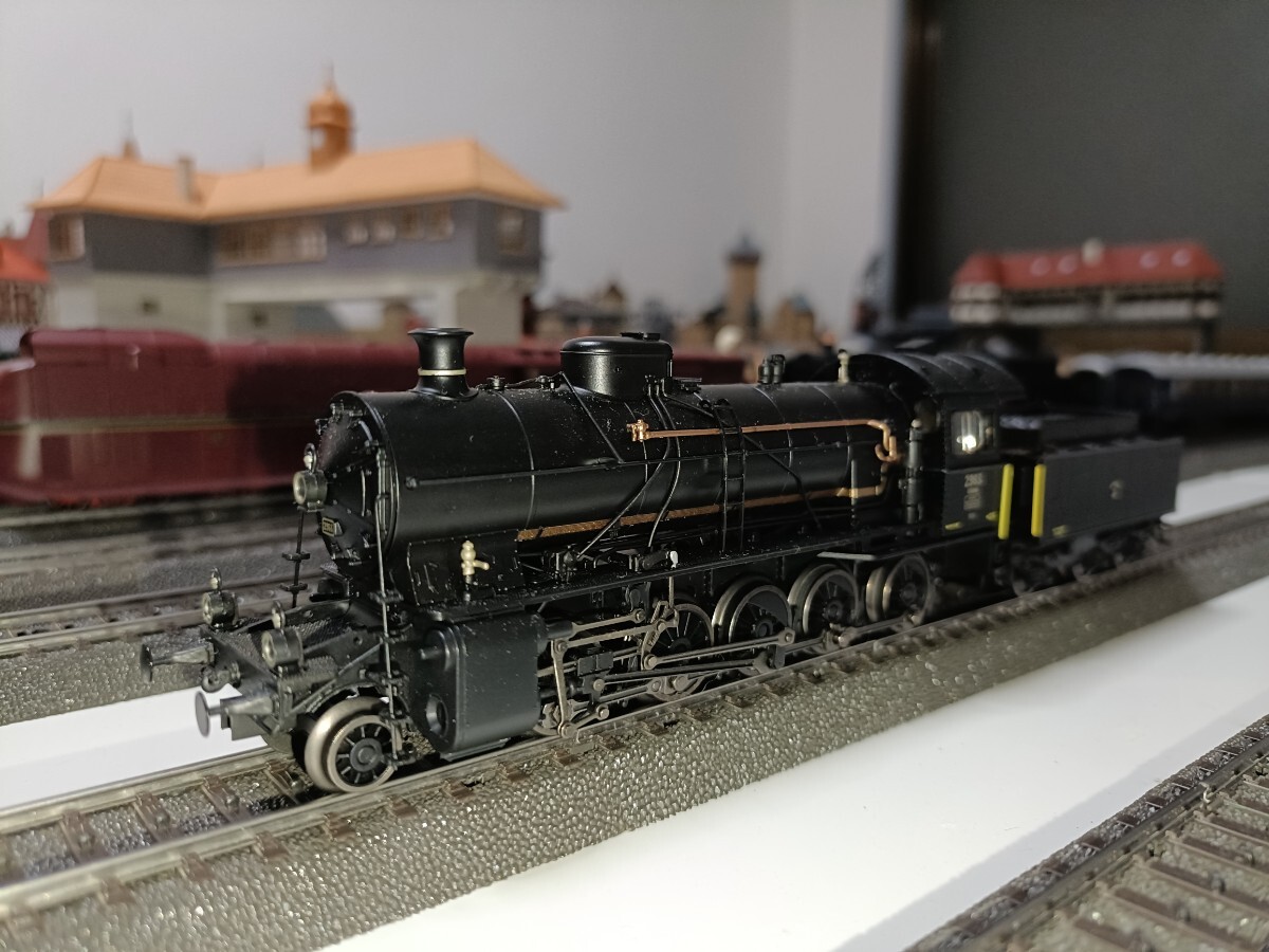 メルクリン 39250 スイス国鉄 C5/6 蒸気機関車です。1916年にゴッタルト峠越え用の機関車として製造されました。ルツェルンの交通博物館に1機保存されています。漆黒のボディに金色の鋼管が生えるメルクリン社の名品です。