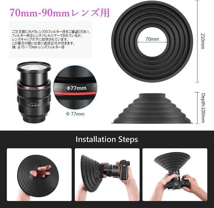 【VAPS_1】レンズフード 70mm-90mmレンズ用 夜景撮影 映り込み防止 窓ガラス 反射防止 一眼レフ 望遠レンズ 送込