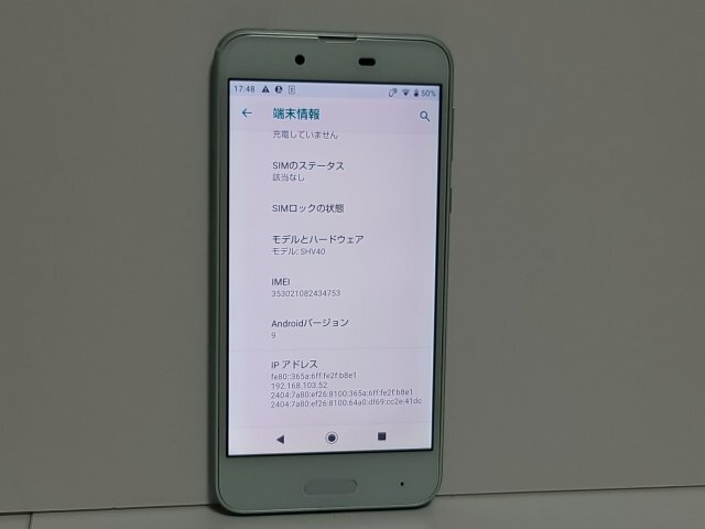 ★【66444WM】 完動品 au SHV40 u SHARP AQUOS sense オパールグリーン 1円 ! 1スタ !
