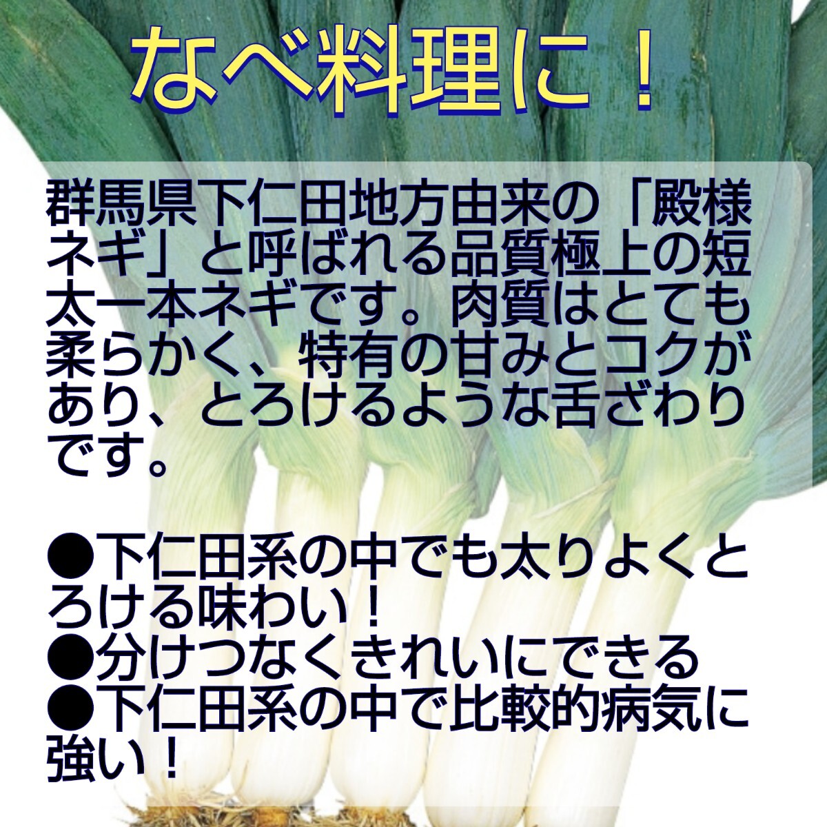 群馬県下仁田地方由来の「殿様ネギ」と呼ばれる品質極上の短太一本ネギです。