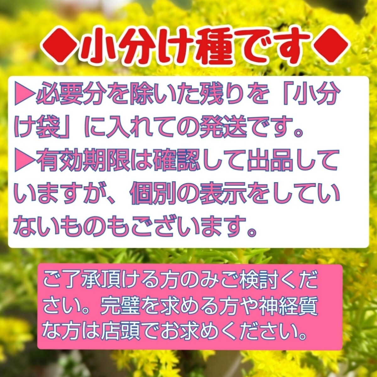 ◆◆小分け出品の為、説明書やコピー、種袋は付属しません。未使用のファスナー付袋にいれ、必要に応じてクッション材で包みます。硬い種はクッション材は使用しません。資材高騰のためクッション材はリサイクル品も使用します。