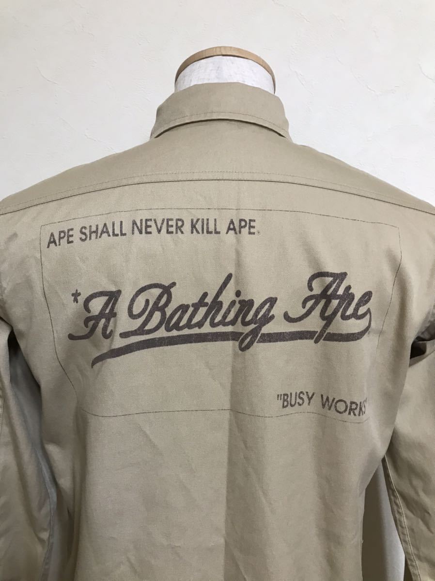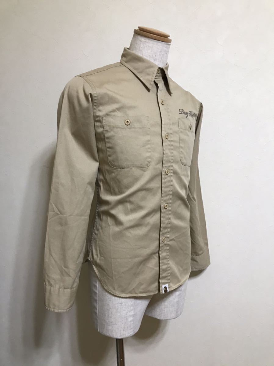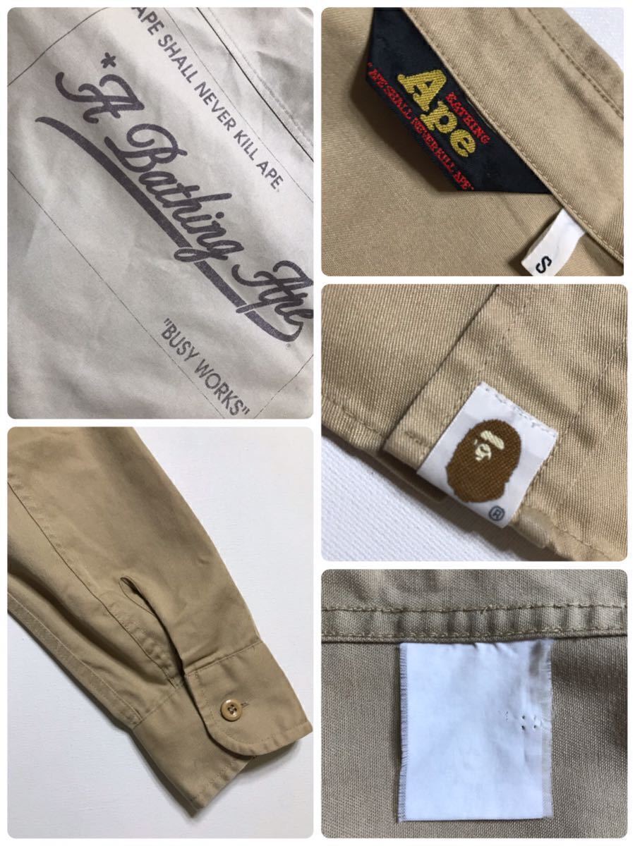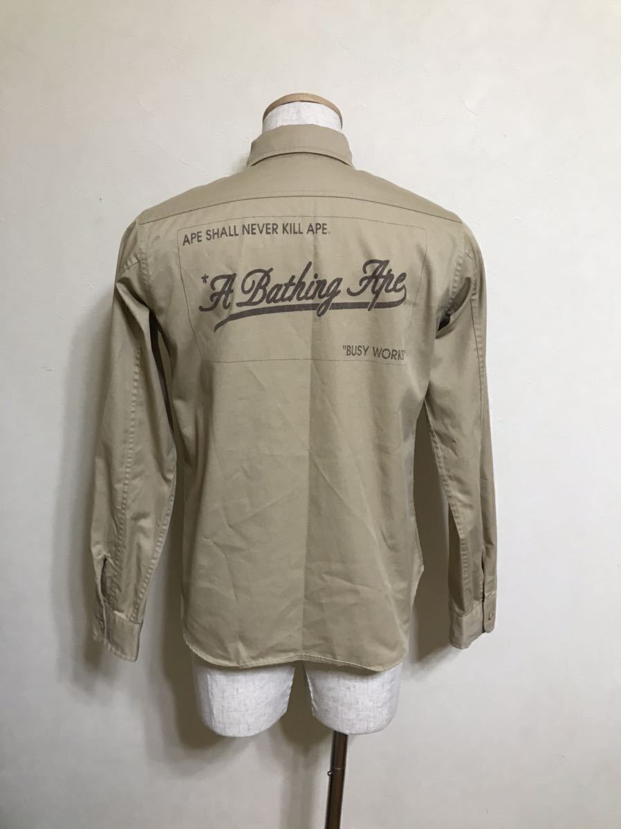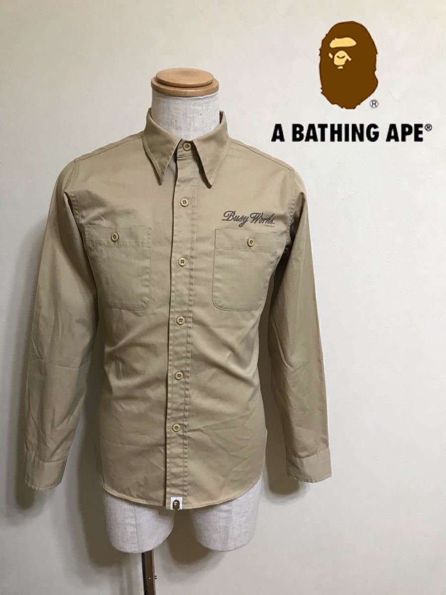 A BATHING APE ア ベイシング エイプ ワークシャツ トップス サイズS 長袖 カーキ