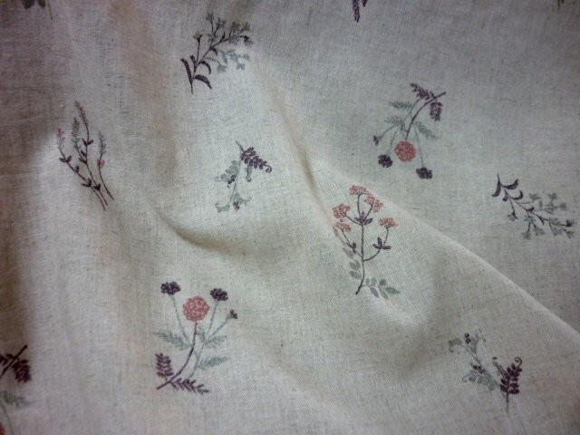 3m 綿麻 シーチング 小花柄/きなりベージュ地 リネン