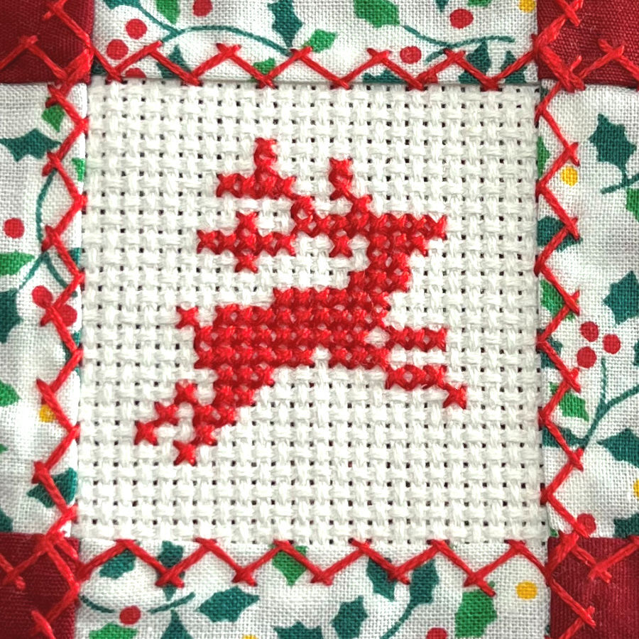 CO113 ハンドメイド コースター クリスマス クロスステッチ刺繍 パッチワーク トナカイ レッド