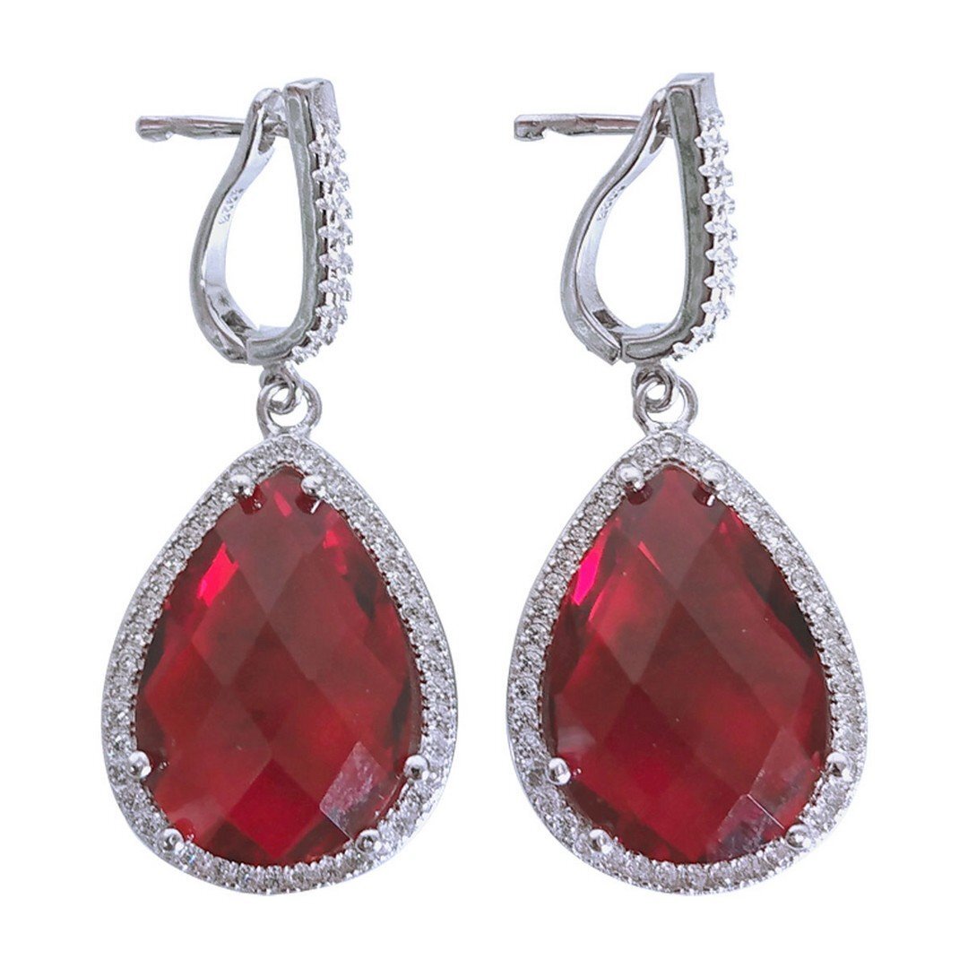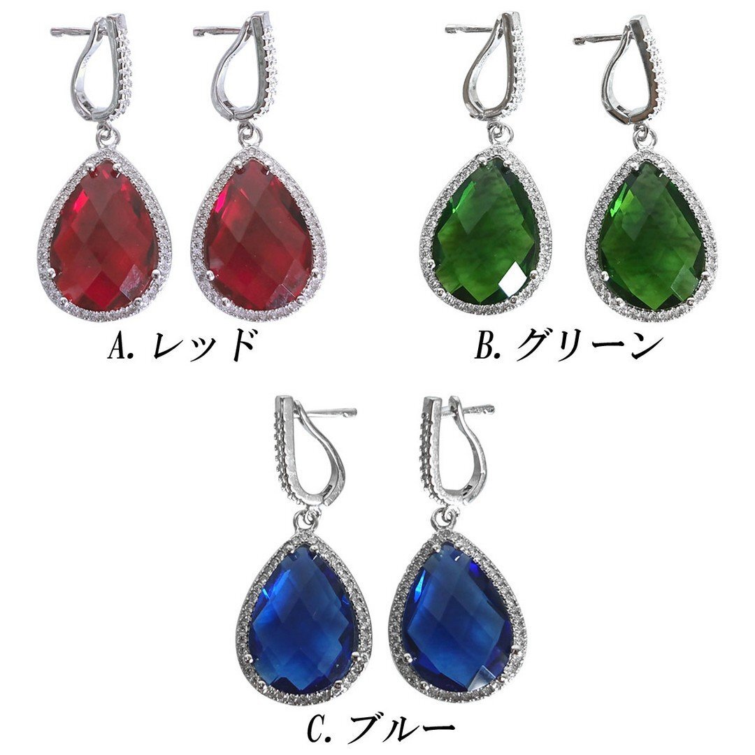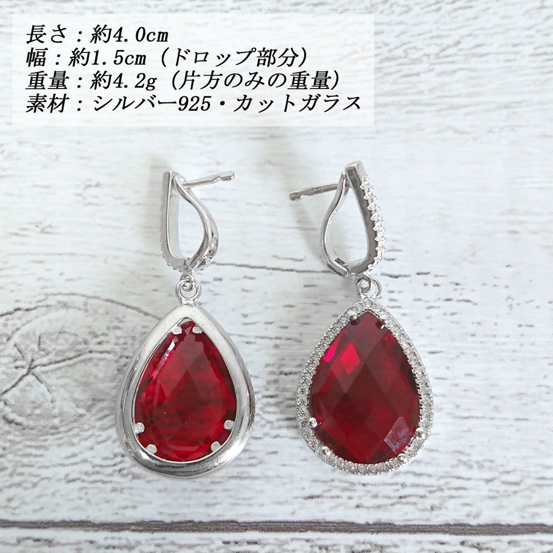 【CT1907023】送料無料 ピアス シルバー レッド ガラス スナップ ドロップ 両耳用 カットガラス ぶらさがり 雫 エレガント アクセサリー