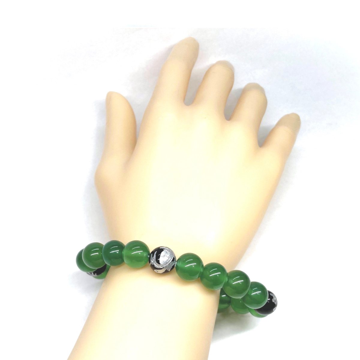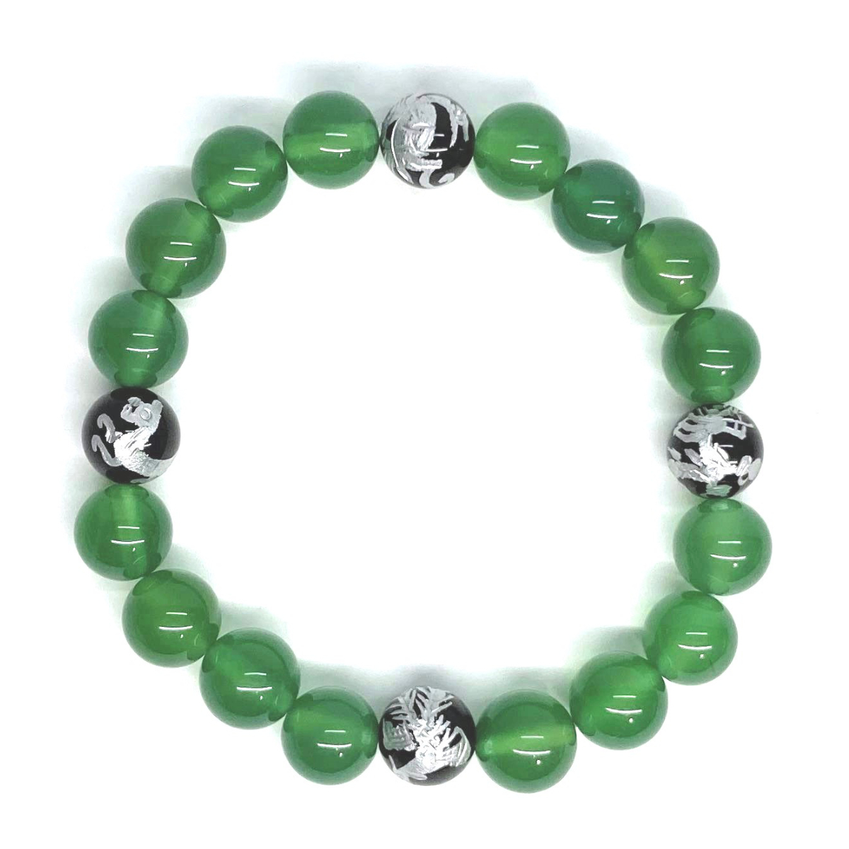 10mm 四神獣銀彫オニキス×緑瑪瑙 パワーストーン ブレスレット天然石 運気上昇 開運 金運 恋愛運 青龍 白虎 玄武 朱雀 シンプル ☆