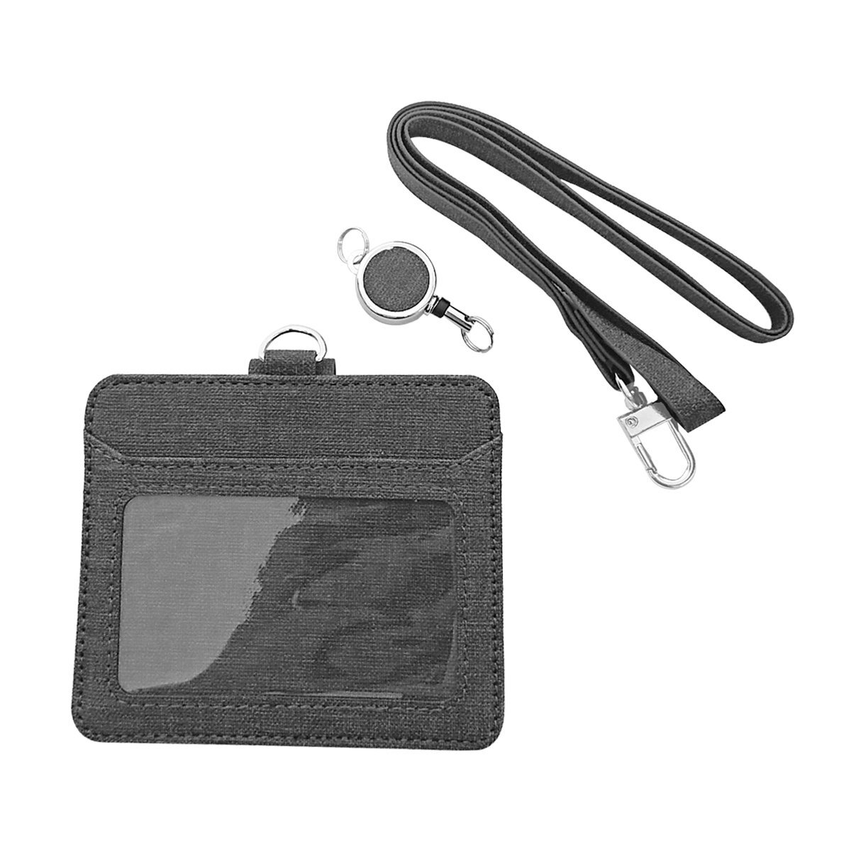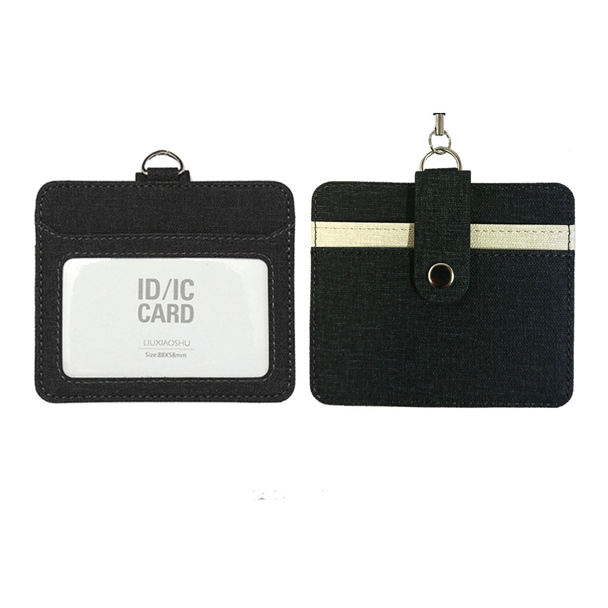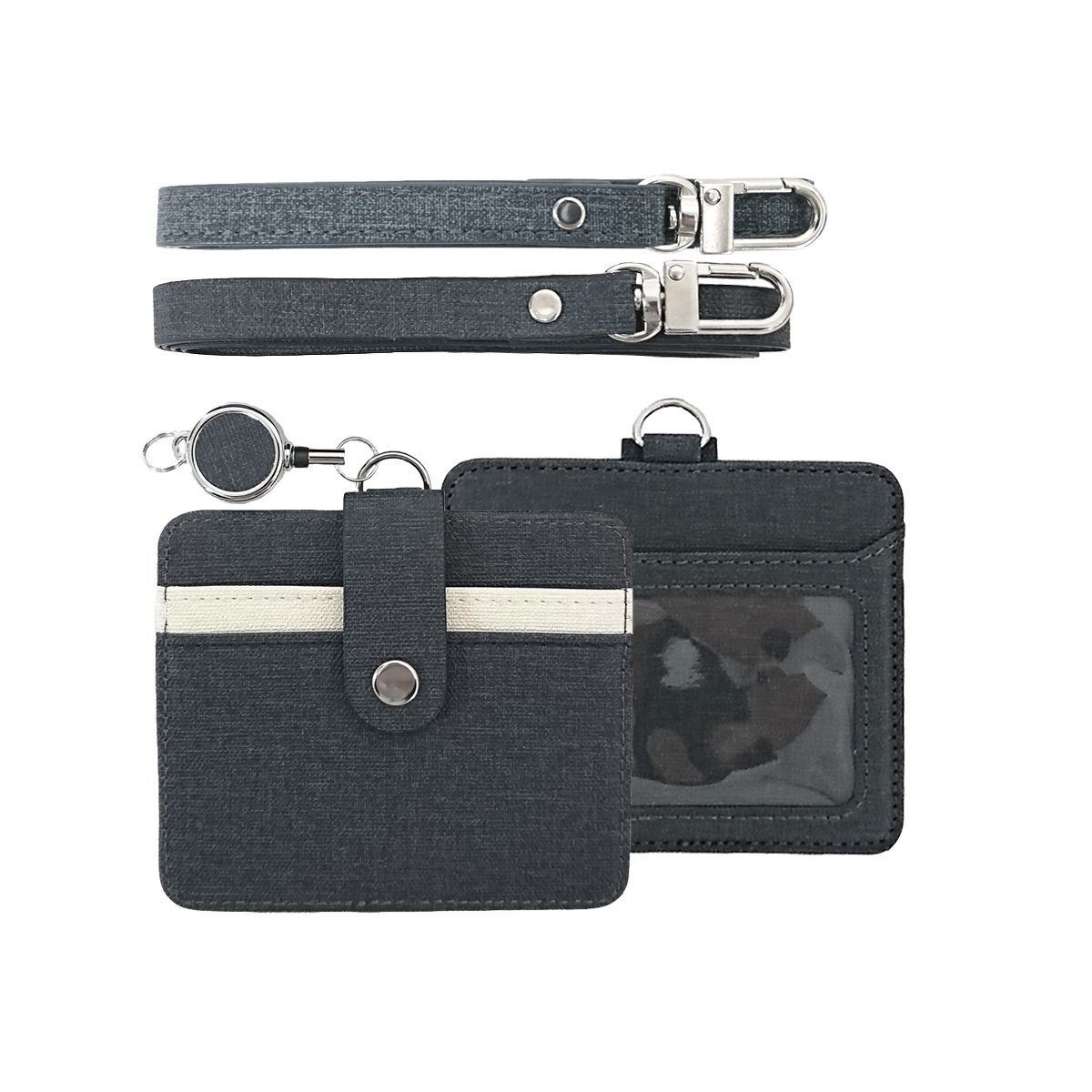 【C10622】IDカードホルダー ブラック 横型 リール付き カードケース パスケース 社員証 定期券 ストラップ2本入り 伸びる 軽量