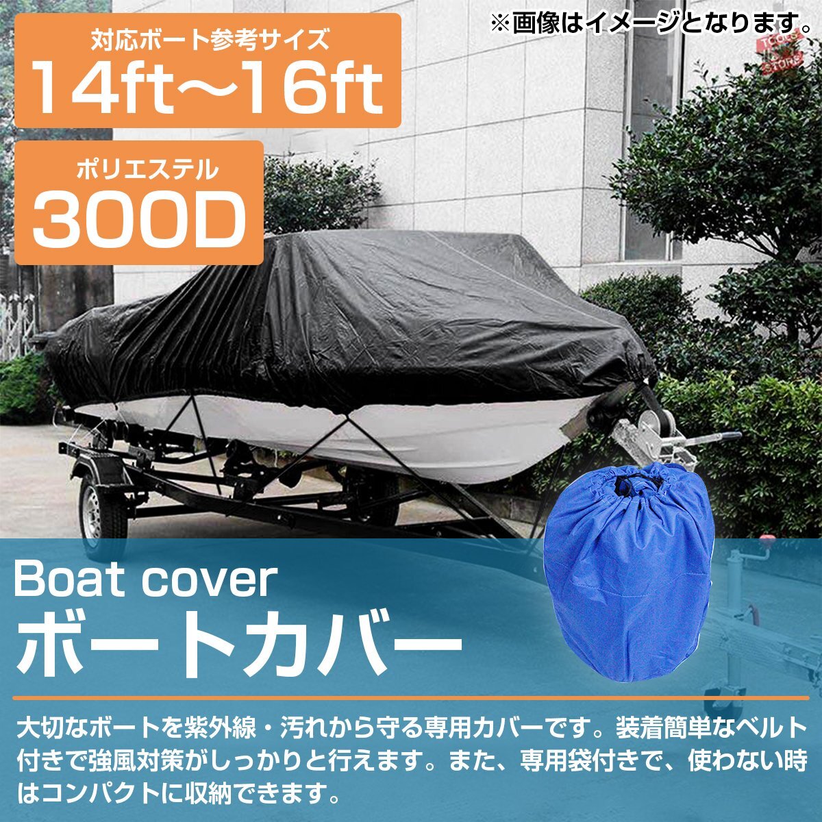 『14ft-16ft 青/ブルー』300D 防水 ボートカバー 全長約540cm×幅約290cm 船体 カバー アルミボート 船 ボート 保管 船舶