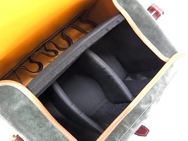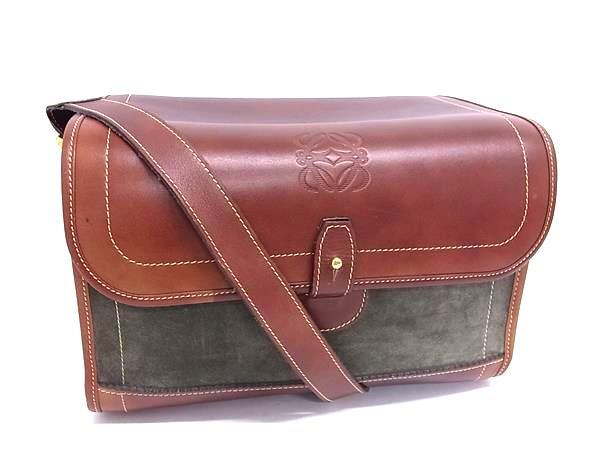 1円 LOEWE ロエベ アナグラム スエード×レザー ショルダーバッグ メイクボックス カーキ系×ブラウン系 FN8538