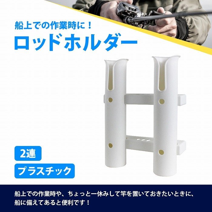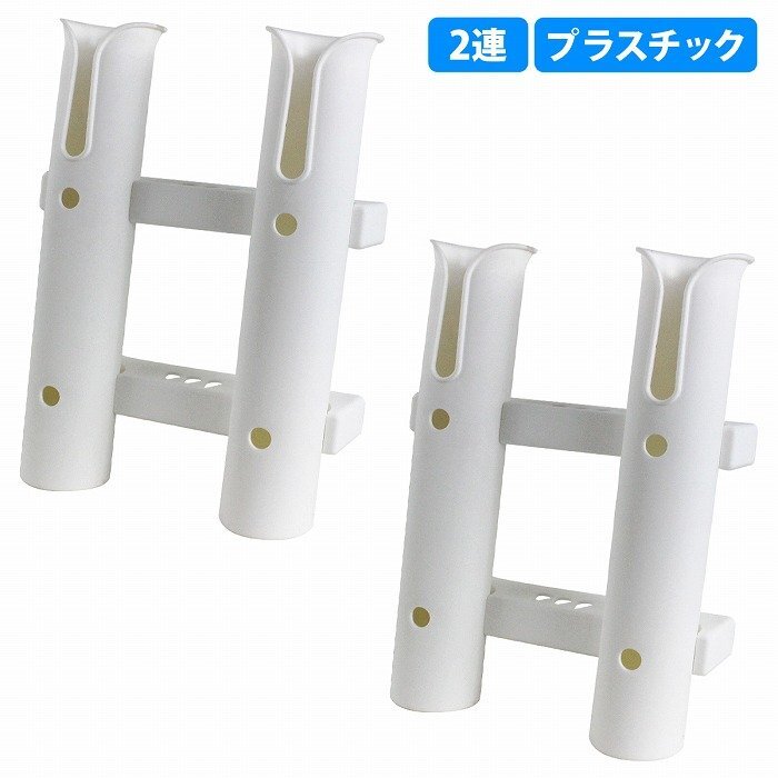 [2連 2個セット] ロッド ホルダー 竿 立て 置き 入れ 釣り フィッシング スタンド ネジ付 固定 船 漁船 ボート 白 ホワイト
