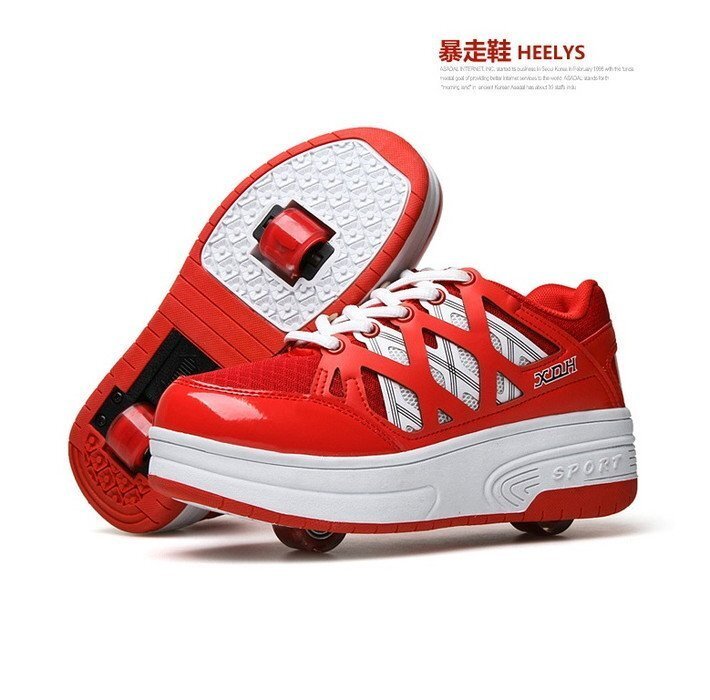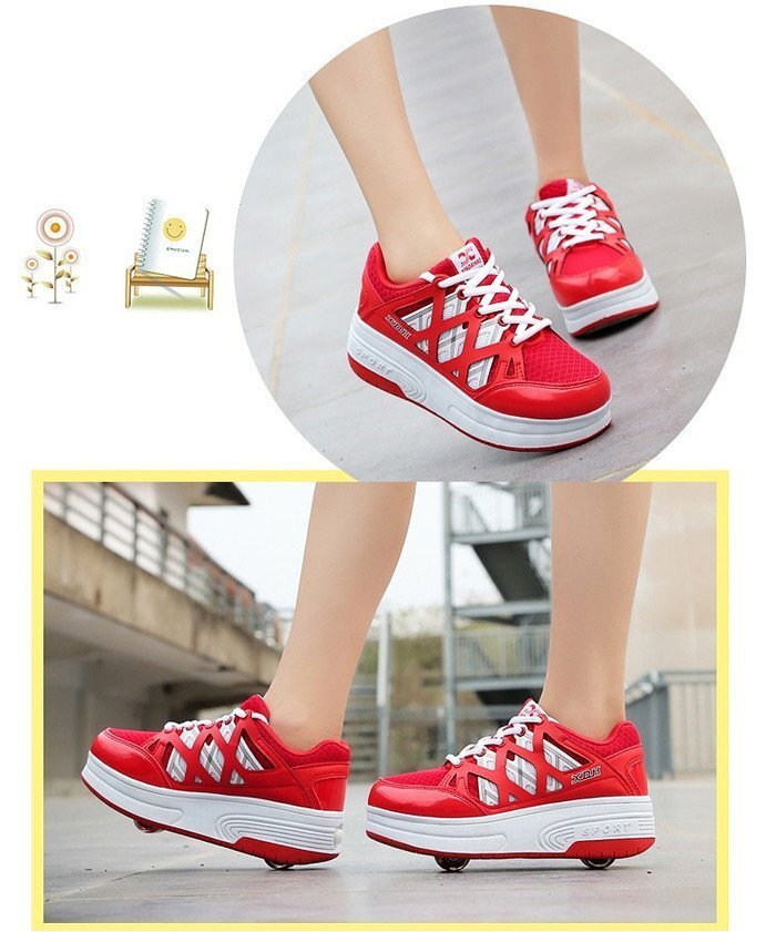 光る☆LED ライトアップスニーカー&ローラーシューズ 一体型 【K-161レッド 20.5cm】夜間 スケート靴 反射材 ジョギング 自転車