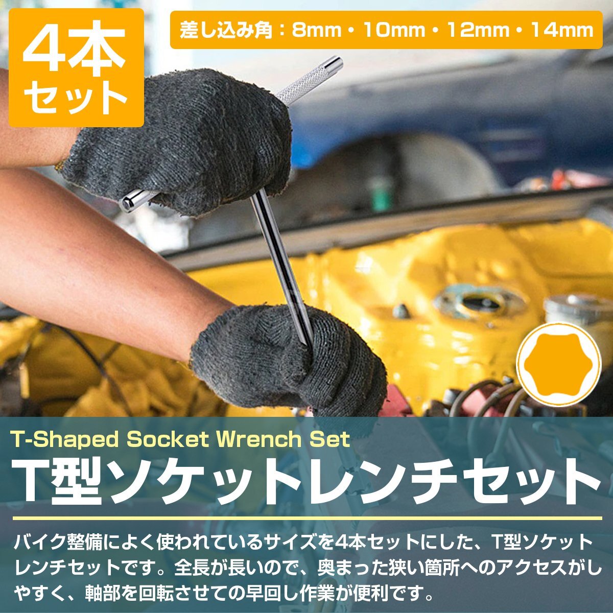 『全長29cm ロングソケット』T型 6角 ソケットレンチ ボックス ロング レンチ 4種 8mm/10mm/12mm/14mm 4本セット バイク 車