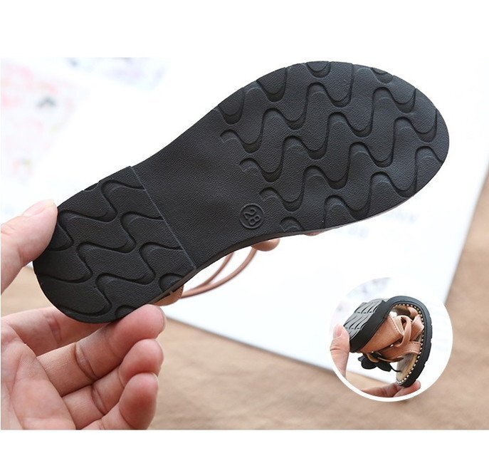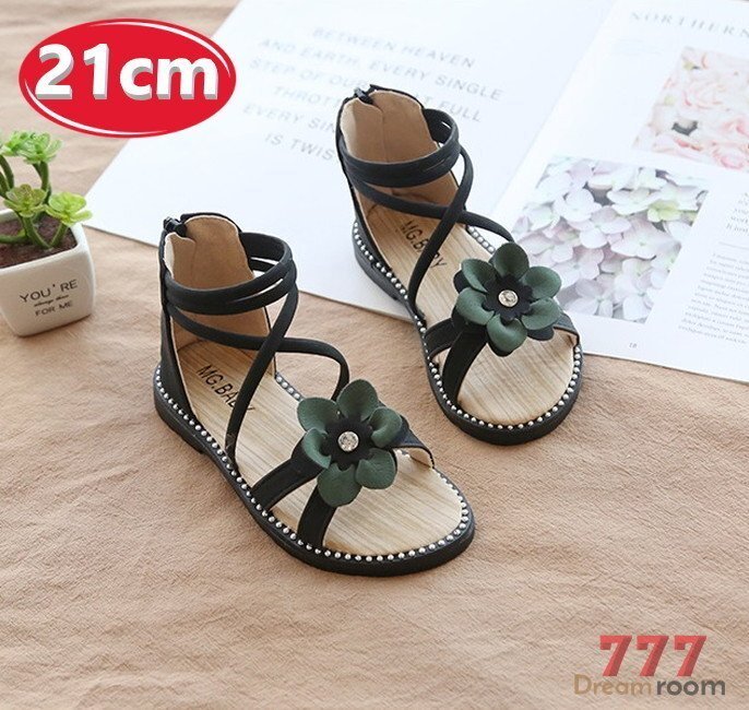 kids 一輪フラワー 編み上げ サンダル 【ブラック 21cm】 韓国子供服 キッズ ビーチサンダル フォーマル 女の子