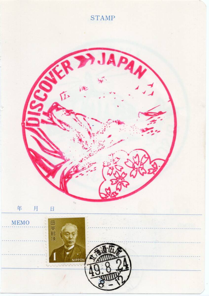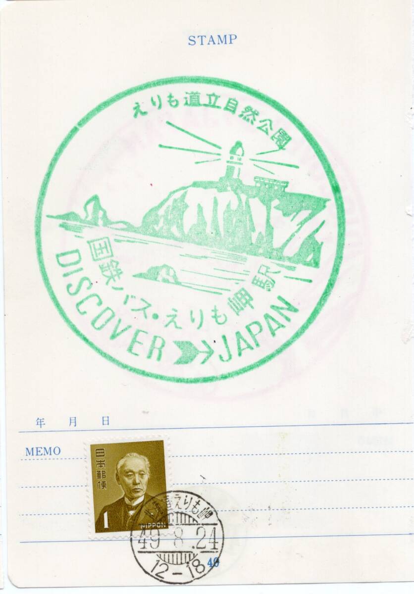 ★ DISCOVER JAPAN えりも岬駅 裏は 広尾駅 スタンプ S49年 えりも岬、広尾郵便局の消印★