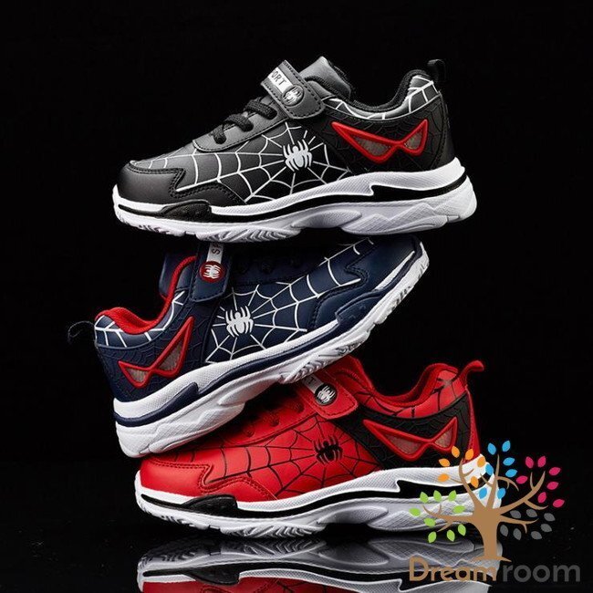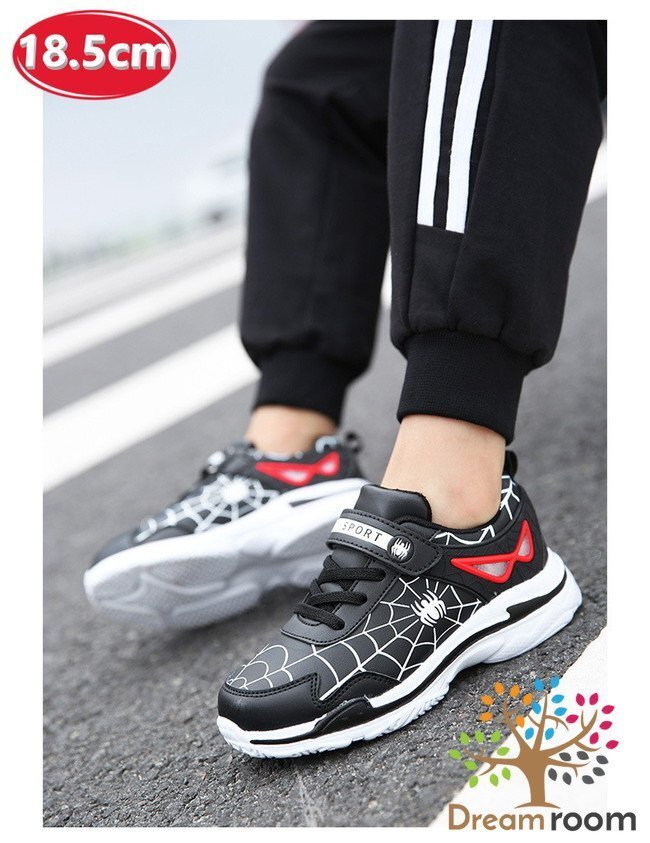 1スタ☆スムース素材 スパイダー デザインスニーカー 【ブラック 18.5cm】 韓国子供服 キッズ シューズ 子供用 男女