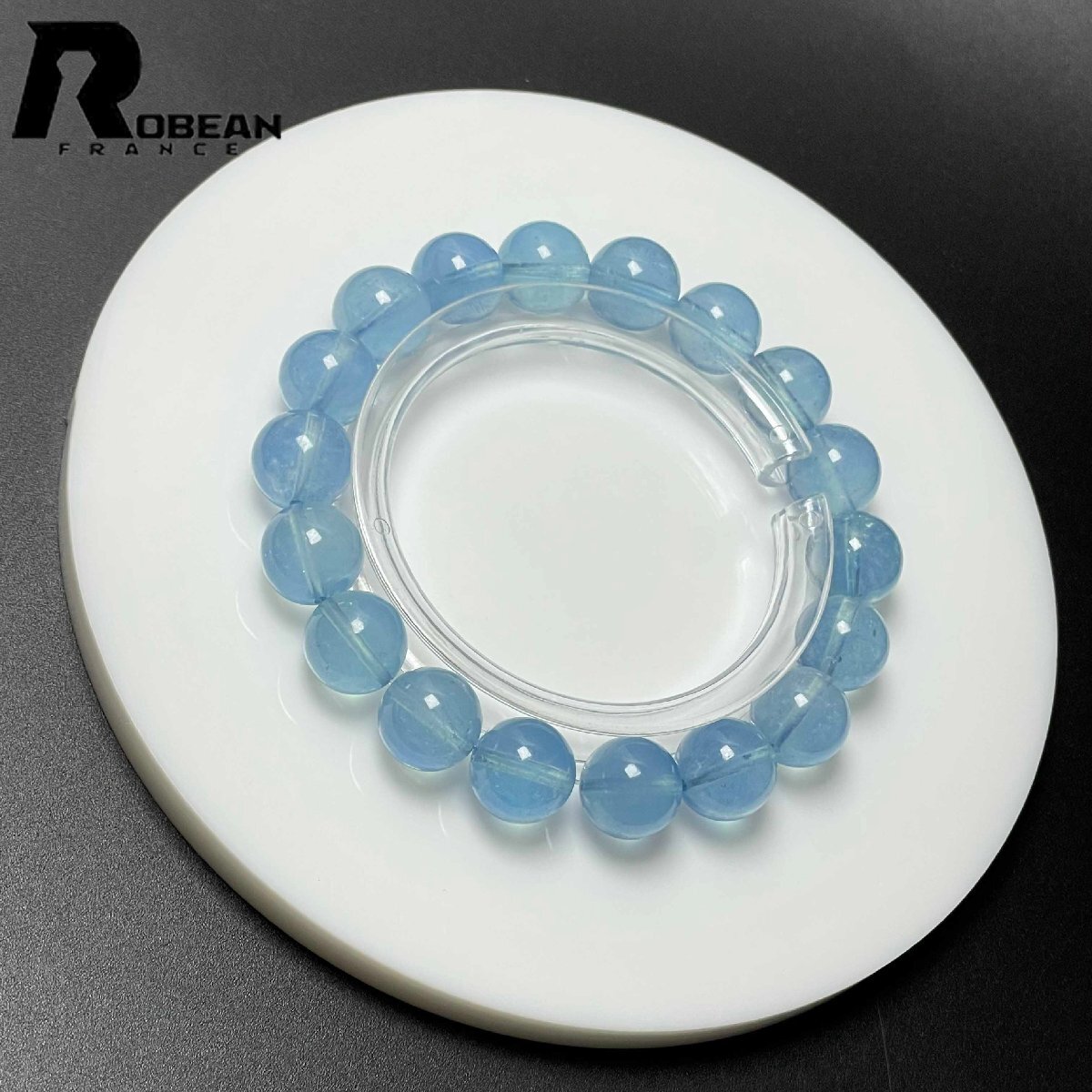 【一点限り】綺麗 EU製 定価20万円★ROBEAN・ブルーアクアマリン★パワーストーン ブレスレット 天然石 原石 お守り 10.9-11.3mm M0723937