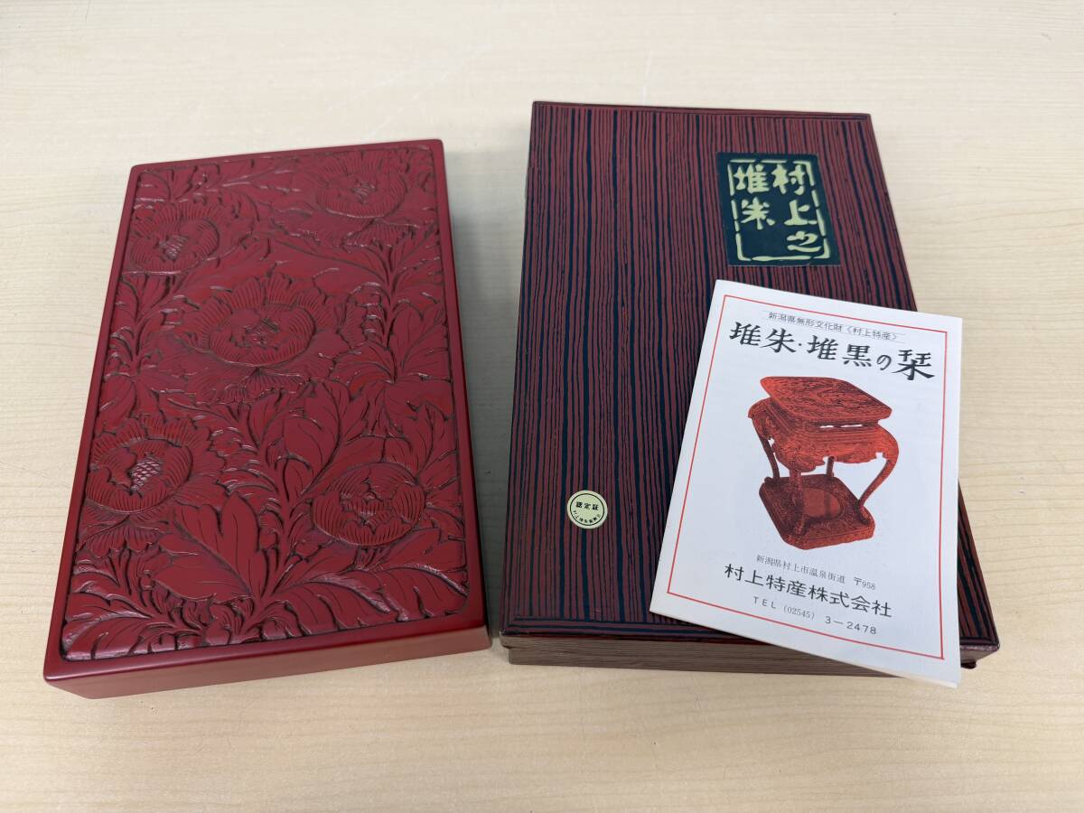 | ご覧いただき誠にありがとうございます。 村上堆朱 文箱 村上漆器 書箱 書道具 伝統工芸品 新潟特産品 サイズ 24.3×15×4.5cm 自宅保管品です。 多少保管時の傷みがあります。 箱に汚れがあります。 発送は佐川急便60サイズ 北海道発です。 送料は下記をご参照ください。 たくさんのご入札をよろしくお願いいたします。 | |