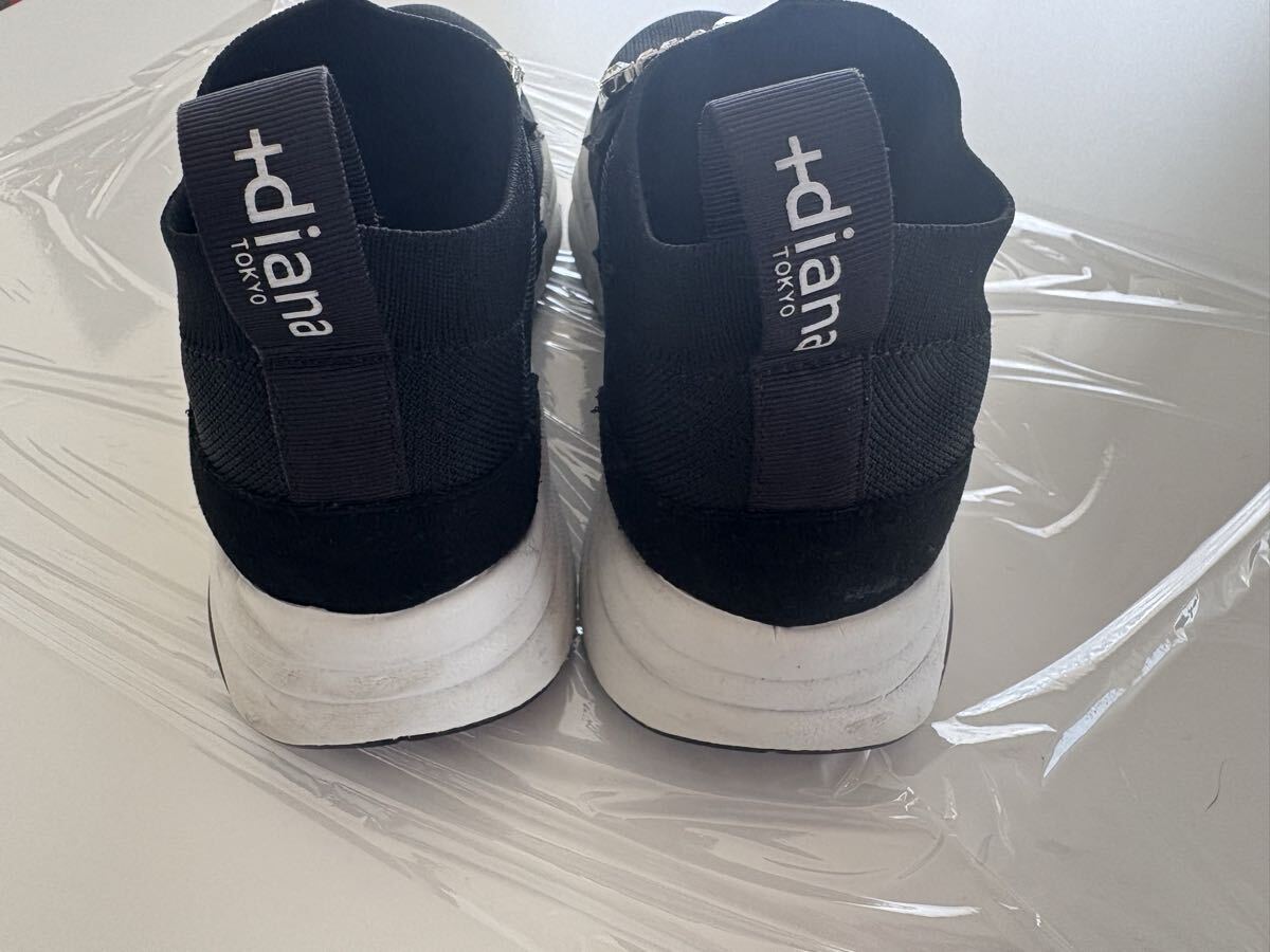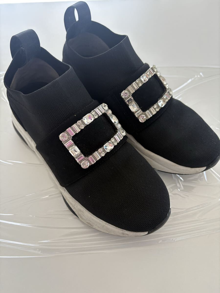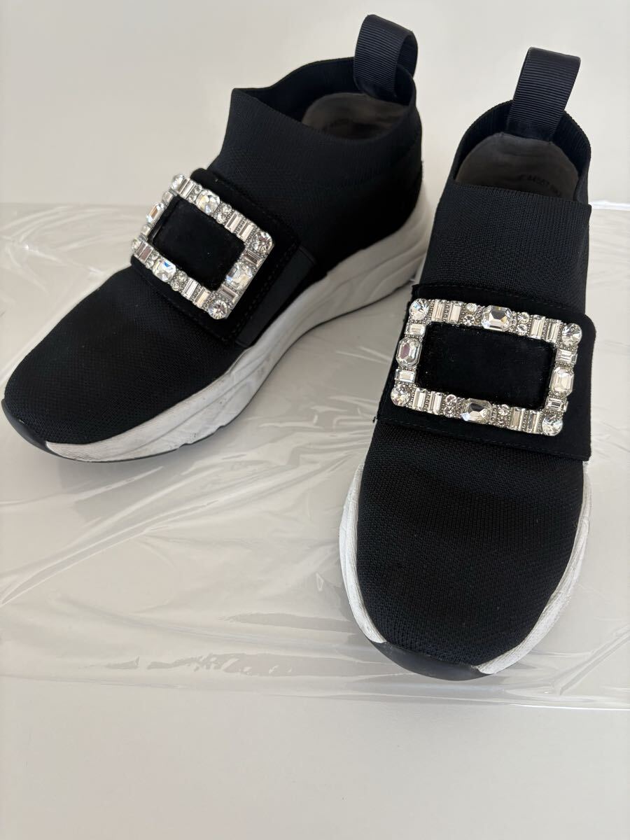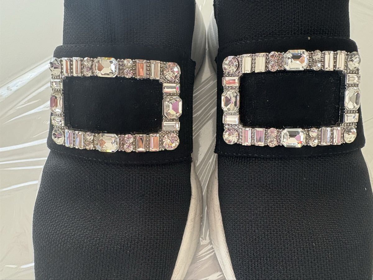 クリスタルバックルのソックススニーカー、ミッドカットモデル。オリジナルのクリスタルバックルで、ニットの抜け感ある雰囲気をラグジュアリーにアップデート!フェミニンなスカートにも好相性な、カジュアルさとクラス感のバランスが絶妙なアイテムです。ボリュームのあるアウトンールでトレンド感がありつつも、超軽量なのも嬉しいポイント。表面に撥水加工を施しているので、急な雨でも安心して履いて頂けます。