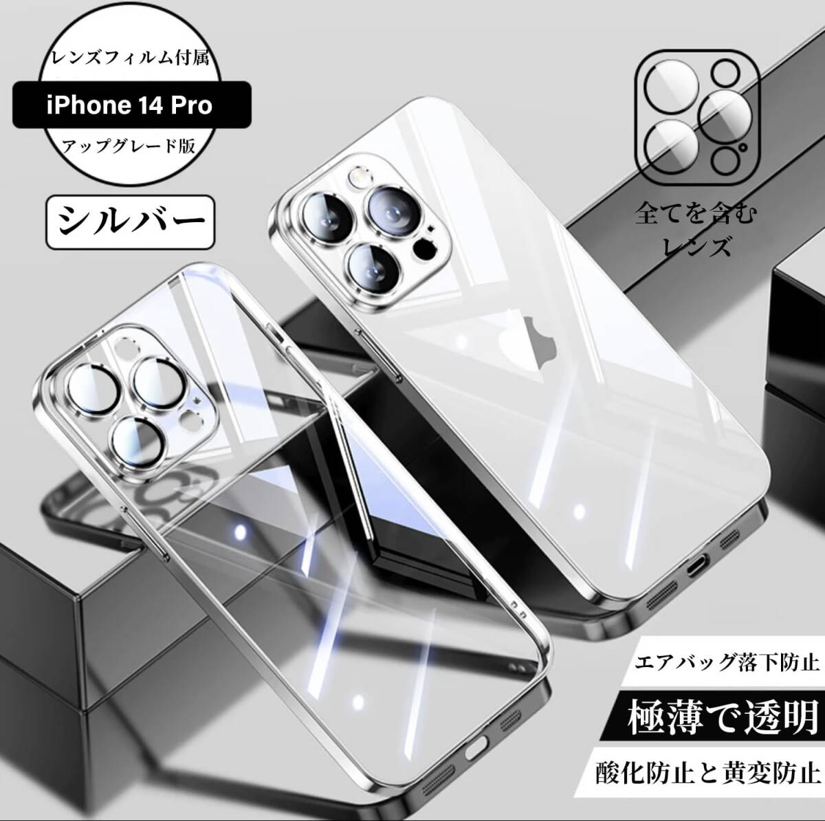 14 Pro用スクエアメッキケースiPhone 14proケース用ソフトクリアTPUバックカバー耐衝撃 (iPhone14 iPh