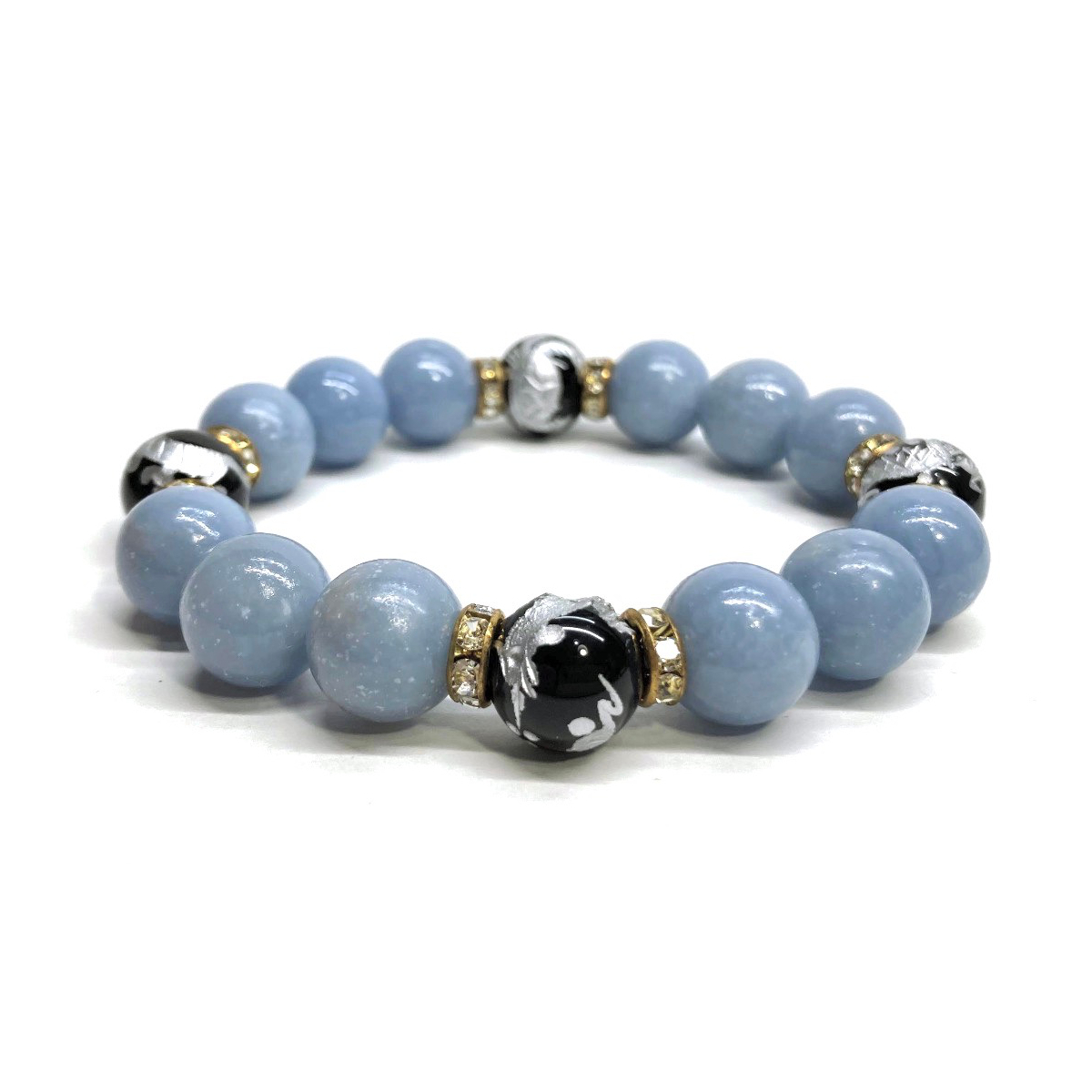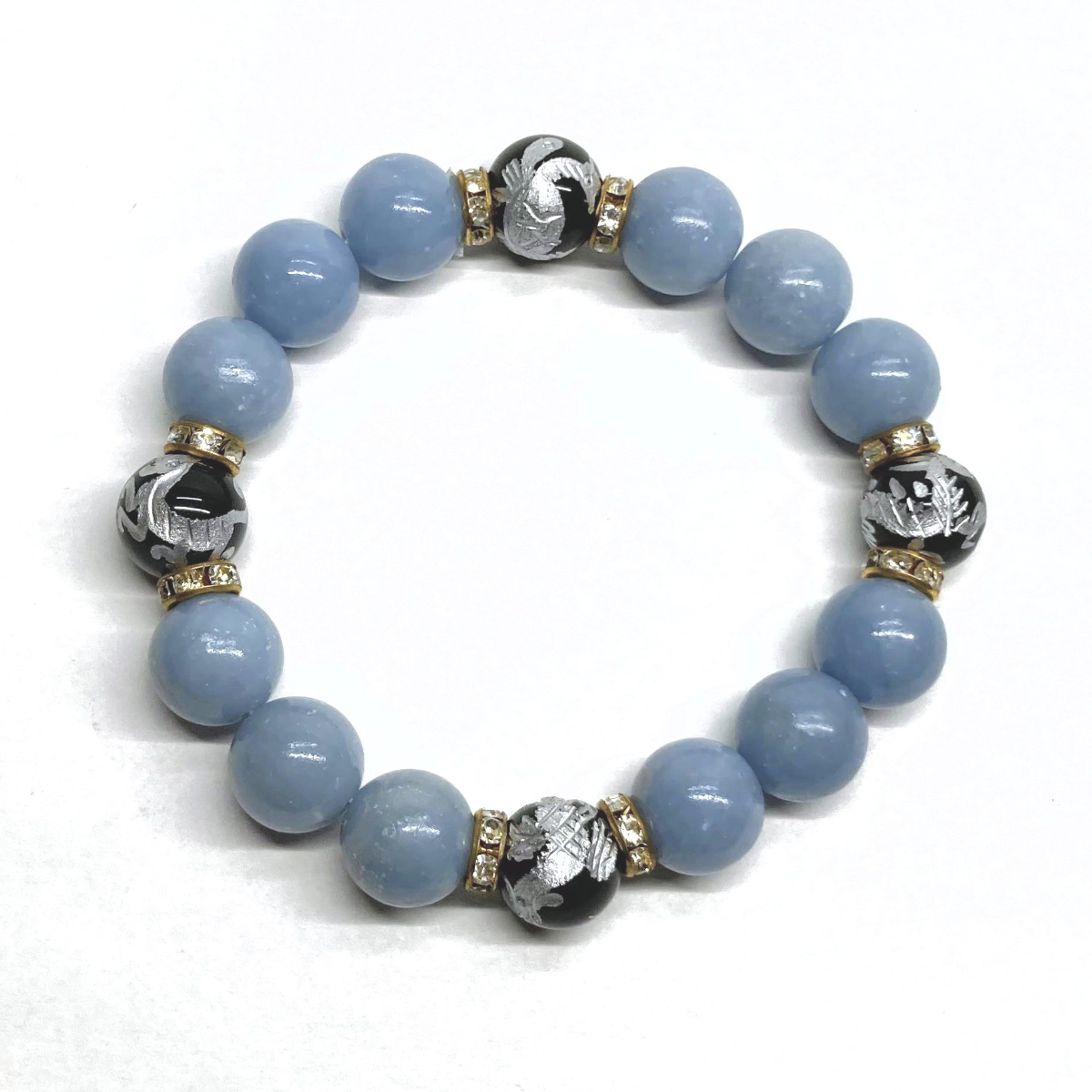 こちらは、四神獣銀彫オニキとエンジェライトを組み合わせたパワーストーンブレスレットです。四神獣は、中国の伝説で4つの方向(東西南北)を守護する神聖な神。四神獣、厄災から身を守り、多くの運気を呼び込むと言われております。石大きさは程よくインパクトのある12mm玉で内周 約17cmです。 数に限りがございますので気になる方はお早めにどうぞ。