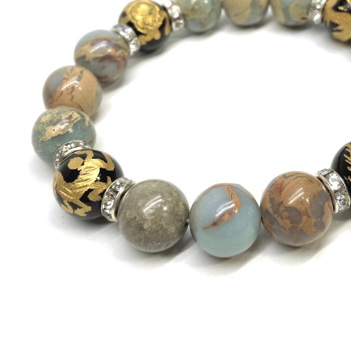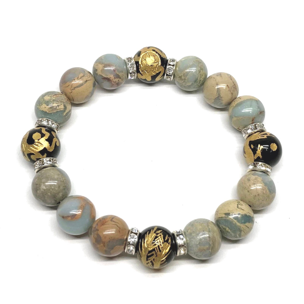 四神獣金彫オニキス×インプレッションストーン 12mm パワーストーン ブレスレット天然石 青龍 白虎 玄武 朱雀 運気上昇 開運 お守り S