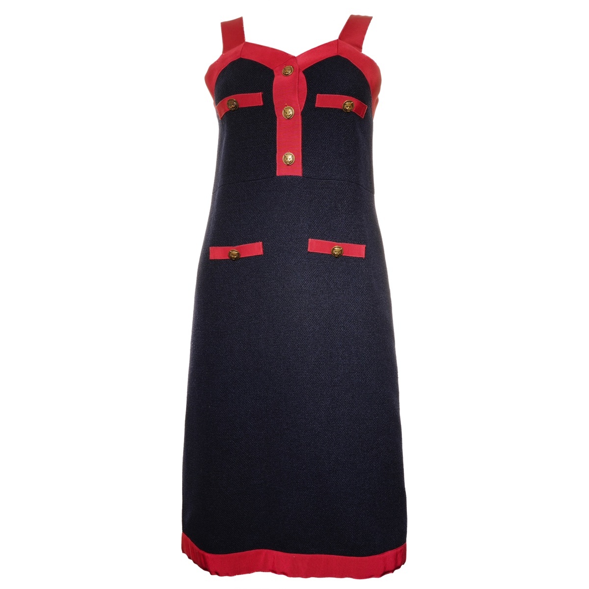 極美品 GUCCI 2019SS レトロ ツイード ノースリーブ タイガーボタン ワンピース ネイビー