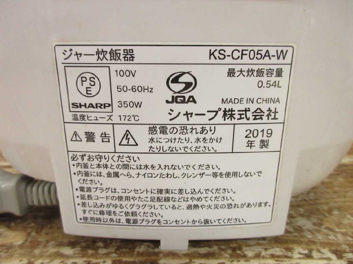 【T8-0238】SHARP KS-CF05A-W 3合炊き 炊飯器 通電OK 現状品 東京引取可【千円市場】